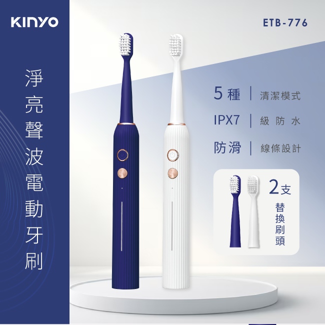〖KINYO〗 淨亮聲波電動牙刷 (ETB) 5種潔淨模式 智慧換區提醒 美國杜邦細緻刷毛 可全機水洗ETB776BU藍色|ETB776W白色Oral CareKINYO官方旗艦店_家電館