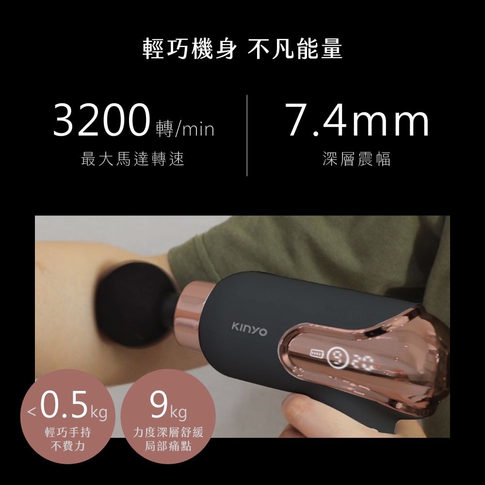 〖KINYO〗 螢幕顯示9段舒緩筋膜槍 (AFG)LED顯示電量 4種按摩頭 9段變速AFG19 玫瑰金(超商限購2台)Massage & Therapy DevicesKINYO官方旗艦店_家電館