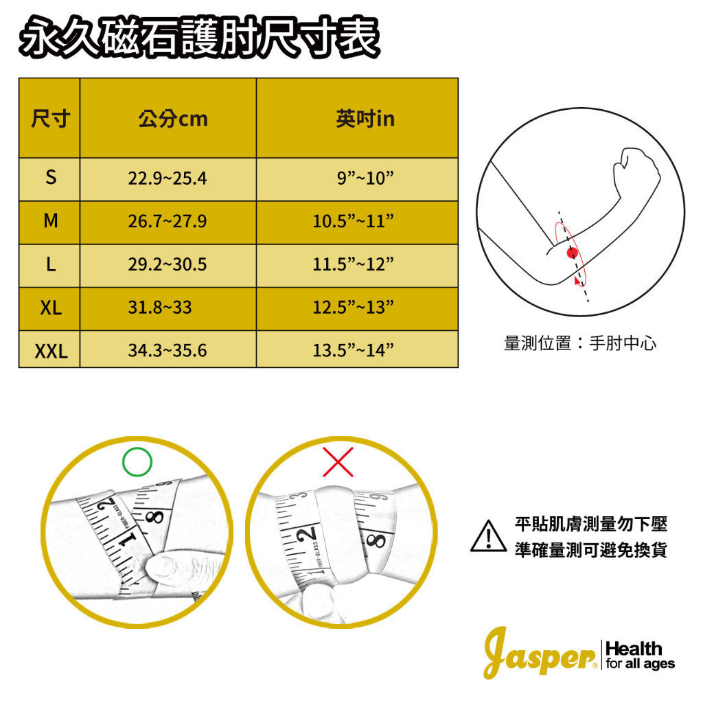 磁石護肘/18顆永久磁石 (台灣製) /保暖抗寒 /護肘套 /舒適內裏親膚/ 手肘護套【Jasper護肘套】 A401DM號 (26.7~27.9cm關節圍長),1支|S號 (22.9~25.4cm關節圍長),1支|S號 (22.9~25.4cm關節圍長),2支優惠組|L號 (29.2~30.5cm關節圍長),2支優惠組|XL號 (31.8~33 cm關節圍長),1支|XL號 (31.8~33 cm關節圍長),2支優惠組|M號 (26.7~27.9cm關節圍長),2支優惠組|L號 (29.2~30.5cm關節圍長),1支|XXL號(34.3~35.6cm肘圍),1支|XXL號(34.3~35.6cm肘圍),2支優惠組Injury & Disability SupportJasper大來護具 官方商店|護膝 護腕 護踝 護腰