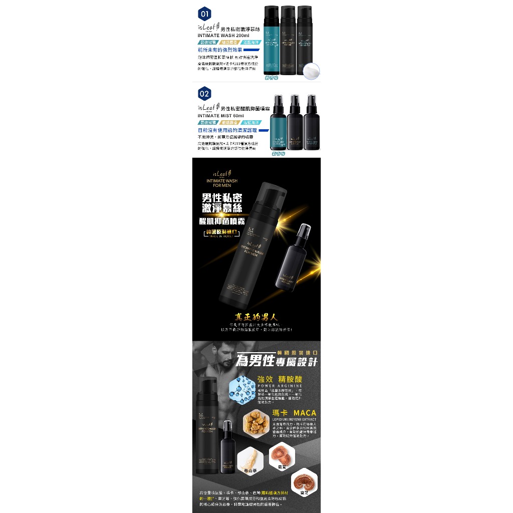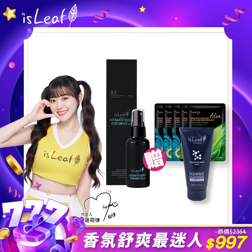 韓國 isLeaf 男性私密激淨慕絲200ml+噴霧60ml贈男士洗面乳*1(隨機)+面膜(隨機) 【isLeaf】