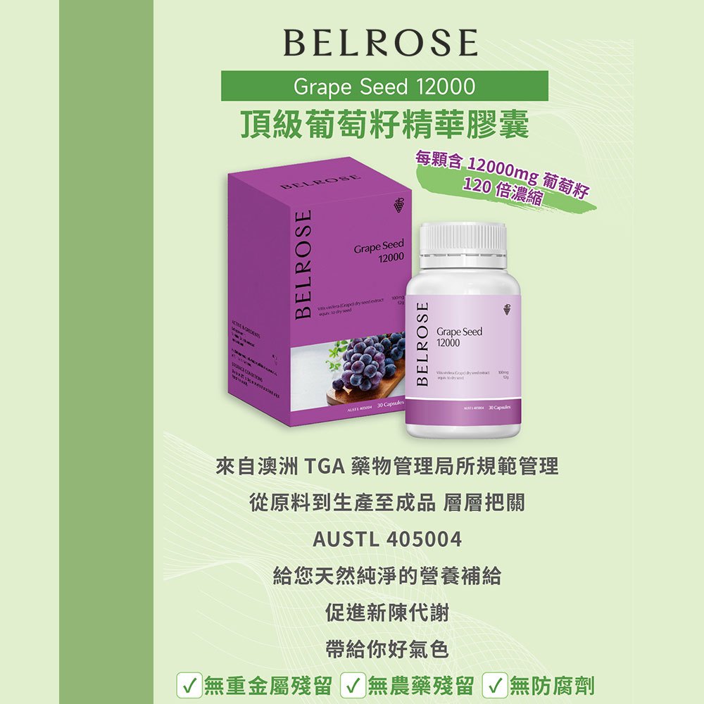 Belrose 澳洲頂級葡萄籽精華膠囊(30顆/瓶)頂級葡萄籽精華膠囊Well BeingHealthy Care品牌旗艦店