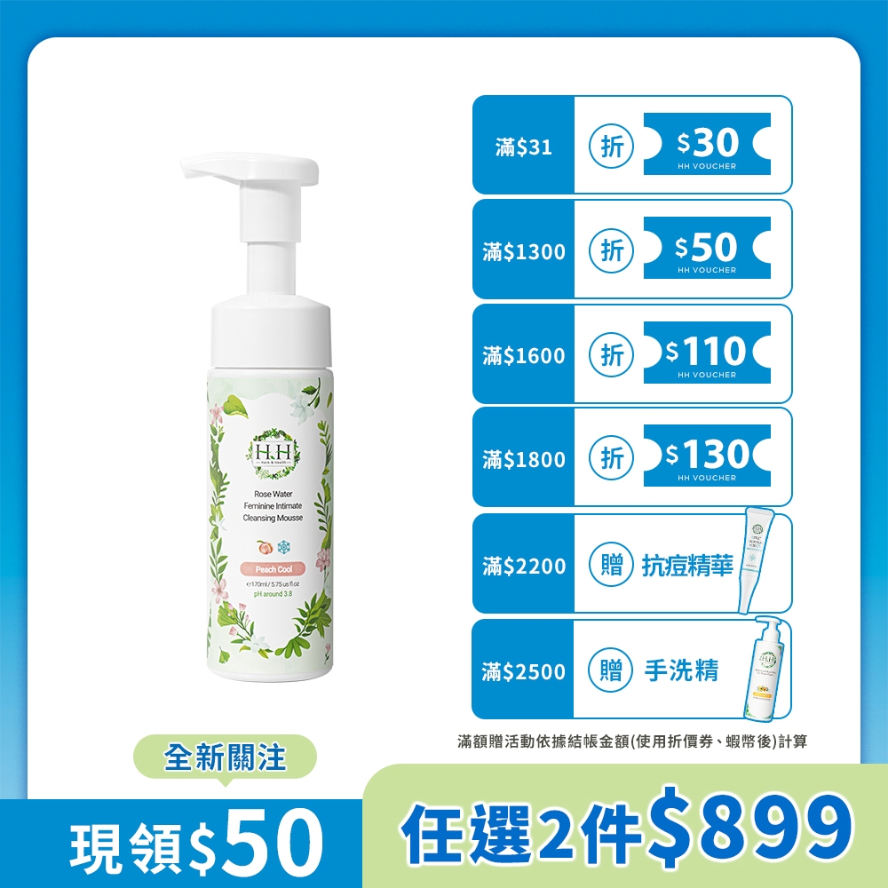 HH私密玫瑰純露潔淨慕斯(170ml)蔓越莓涼感|蜜桃涼感|澄淨白茶(涼感)|澄淨白茶Feminine CareHH草本新淨界 (私密/寶寶/食品/保養品都在HH)