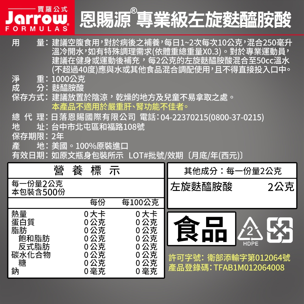(預購)Jarrow賈羅公式 恩賜源®專業級左旋麩醯胺酸(1000g/瓶)【官方直營】glutamine (新包裝)(預購)Jarrow賈羅公式 恩賜源®專業級左旋麩醯胺酸(1000g/瓶)【官方直營】glutamine (新包裝)Well BeingJarrow賈羅公式 x Nature’s Truth綠萃淨 | 官方直營