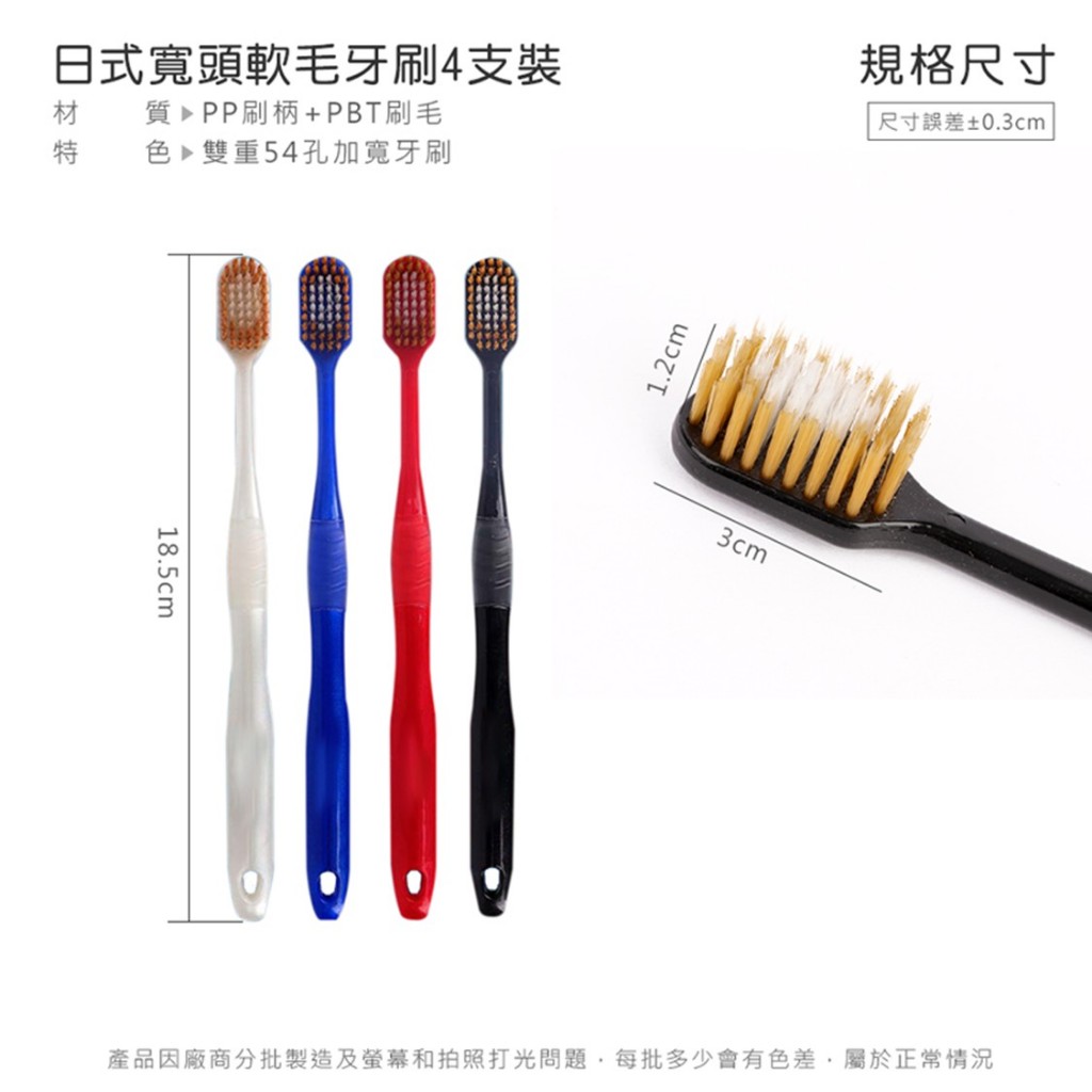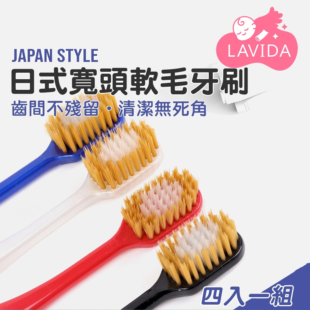 【LAVIDA嚴選】日式寬頭軟毛牙刷 4支裝 54孔加寬牙刷 軟毛 牙刷 日式 寬頭牙刷 成人牙刷寬頭牙刷(4入組)Oral CareLAVIDA 育兒好好玩!