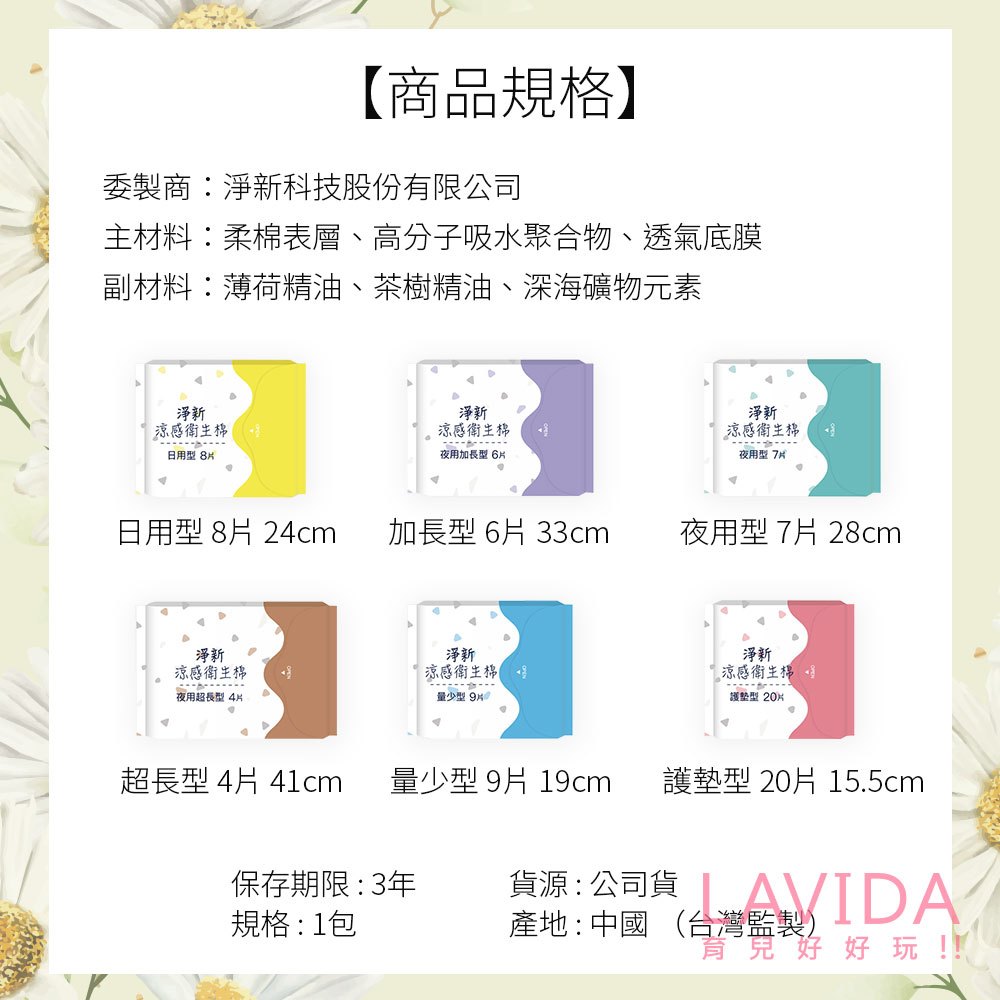 【台灣淨新】涼感衛生棉 日用衛生棉 衛生棉涼感 夜用衛生棉 護墊 涼感 透氣衛生棉 超薄衛生棉 日用 量少型 加長 夜用粉▸護墊15.5cm(20片入)–無翅膀|藍▸量少19cm(9片入)–有翅膀|黃▸日用24cm(8片入)–有翅膀|綠▸夜用28cm(7片入)–有翅膀|紫▸夜用加長33cm(6片入)–有翅膀|咖啡▸夜用超長41cm(4片入)–有翅膀Feminine CareLAVIDA 育兒好好玩!