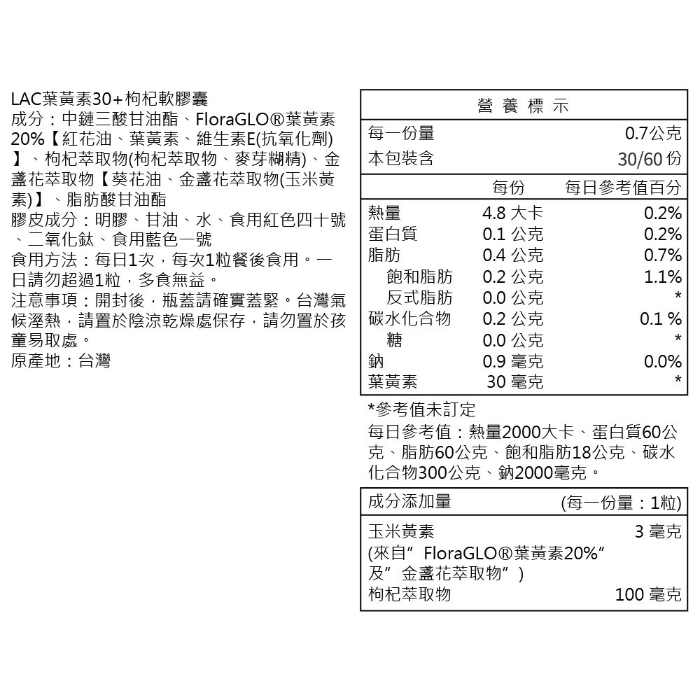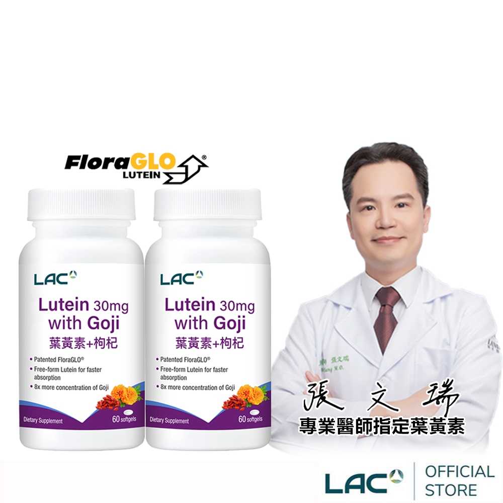 【LAC利維喜】2入組 葉黃素30枸杞軟膠囊60顆(專利FloraGLO/游離型/晶亮舒適)