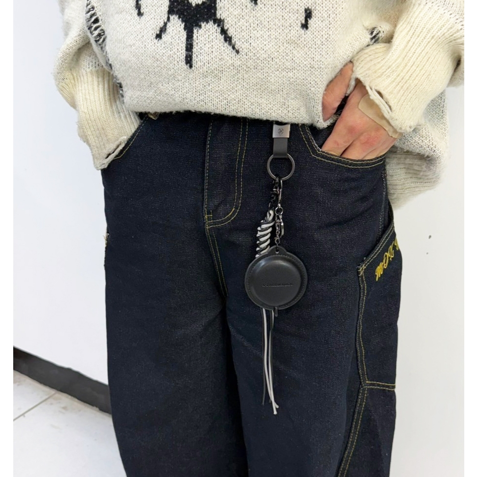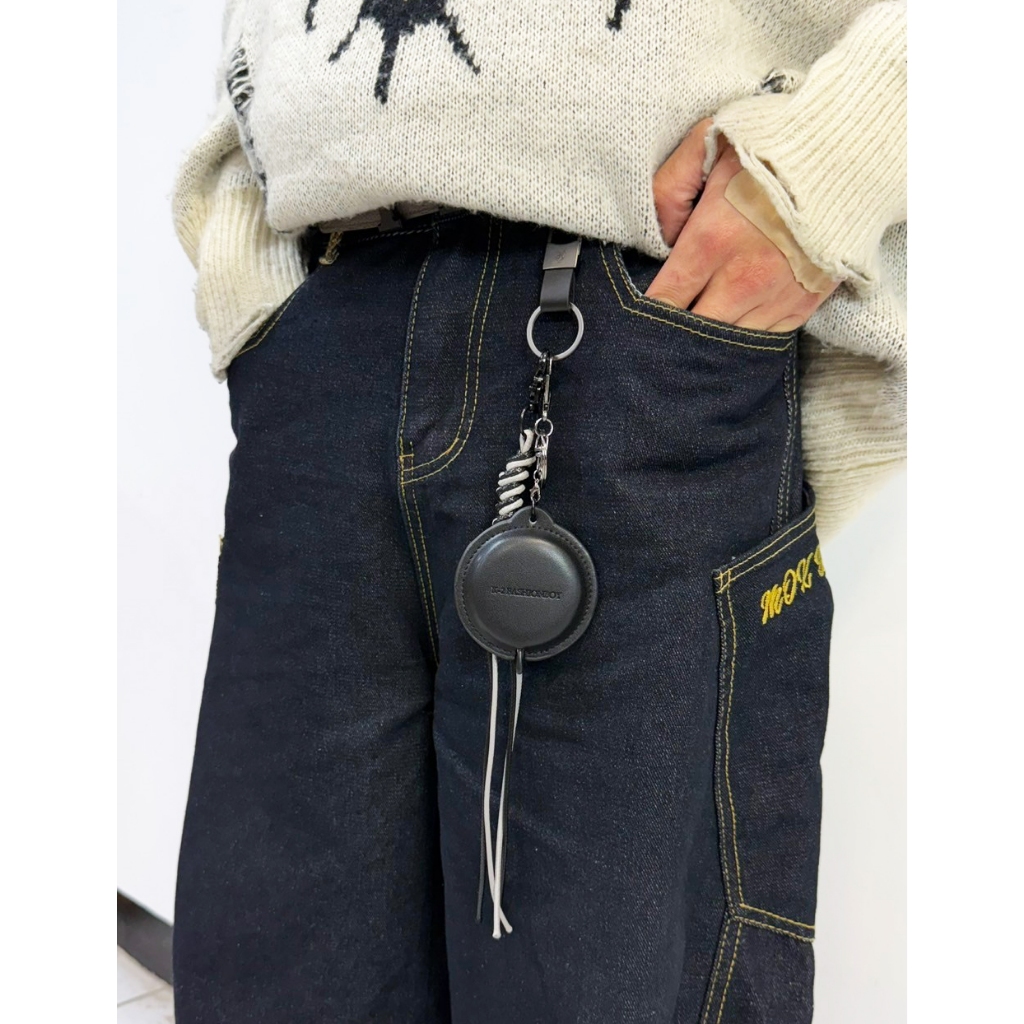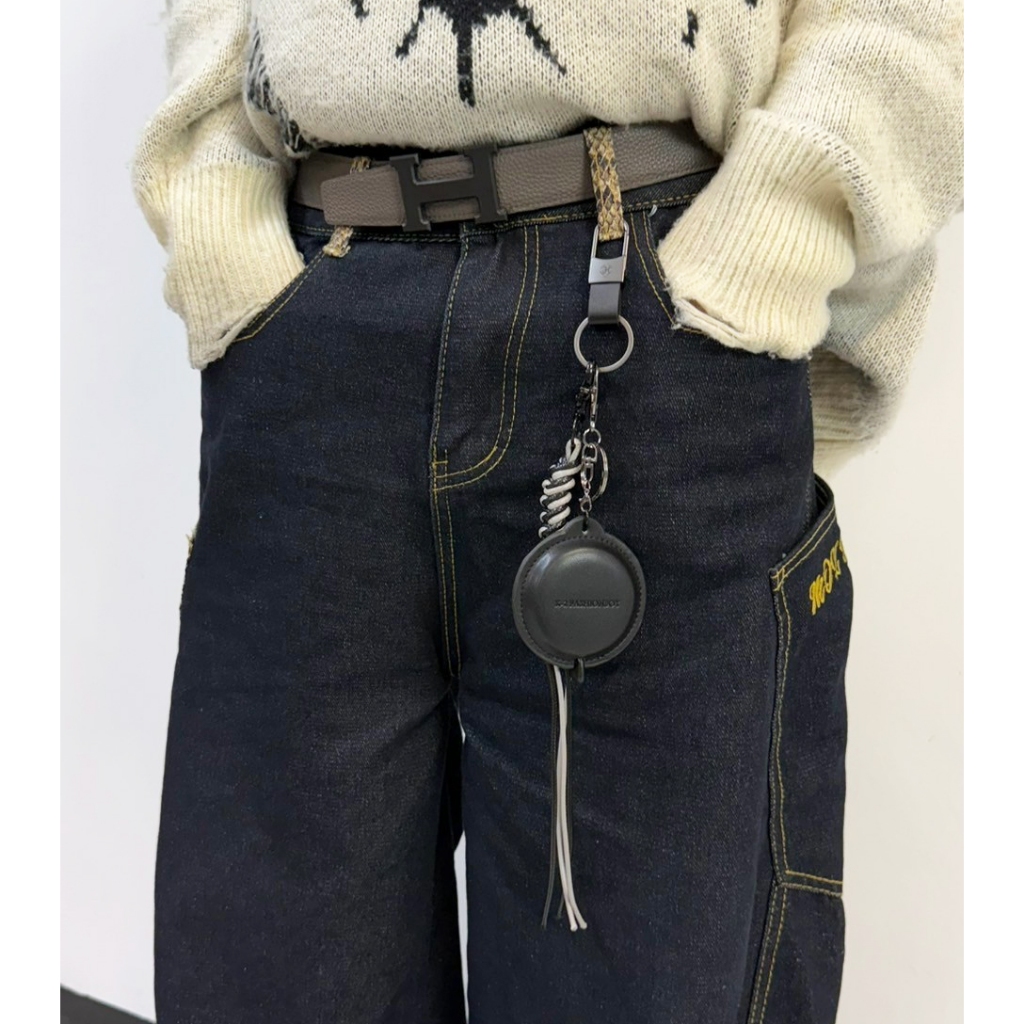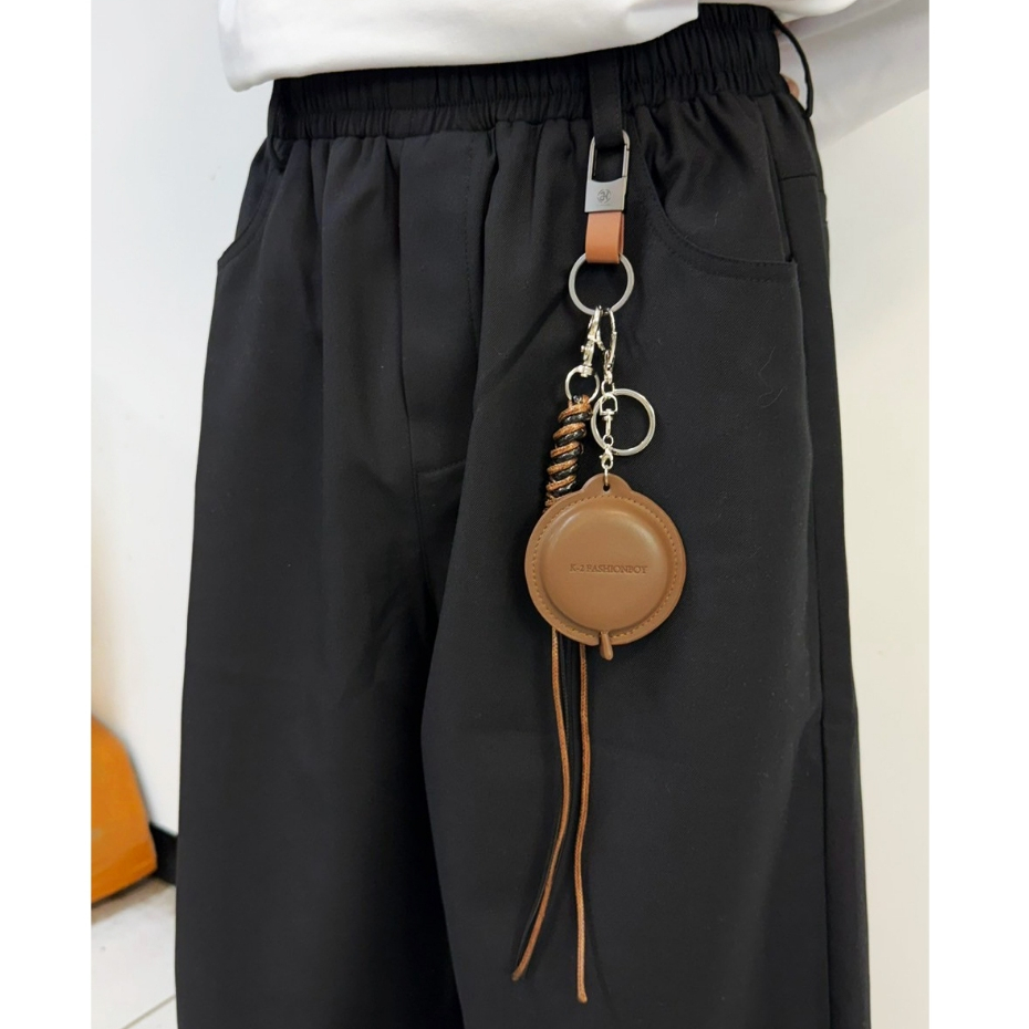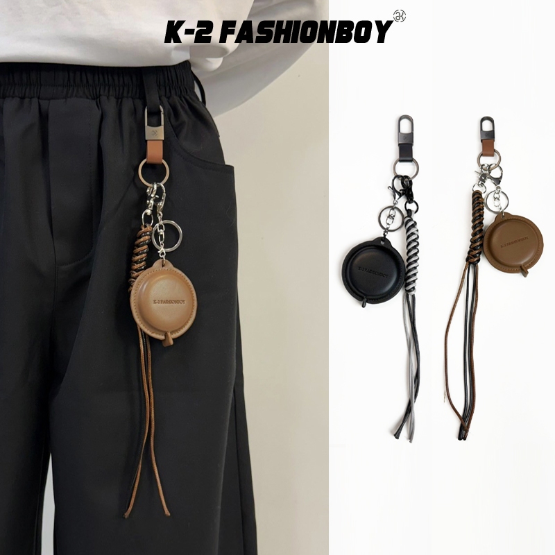【K-2】皮尺造型褲飾 捲尺 鑰匙圈 cleanfit 褲飾 高級感 麻編繩 飾品 掛件 吊飾 復古 搭配【KM191】單件咖色皮尺|單件黑色皮尺 |整組咖色|整組黑色KeychainsK-2 Fashionboy