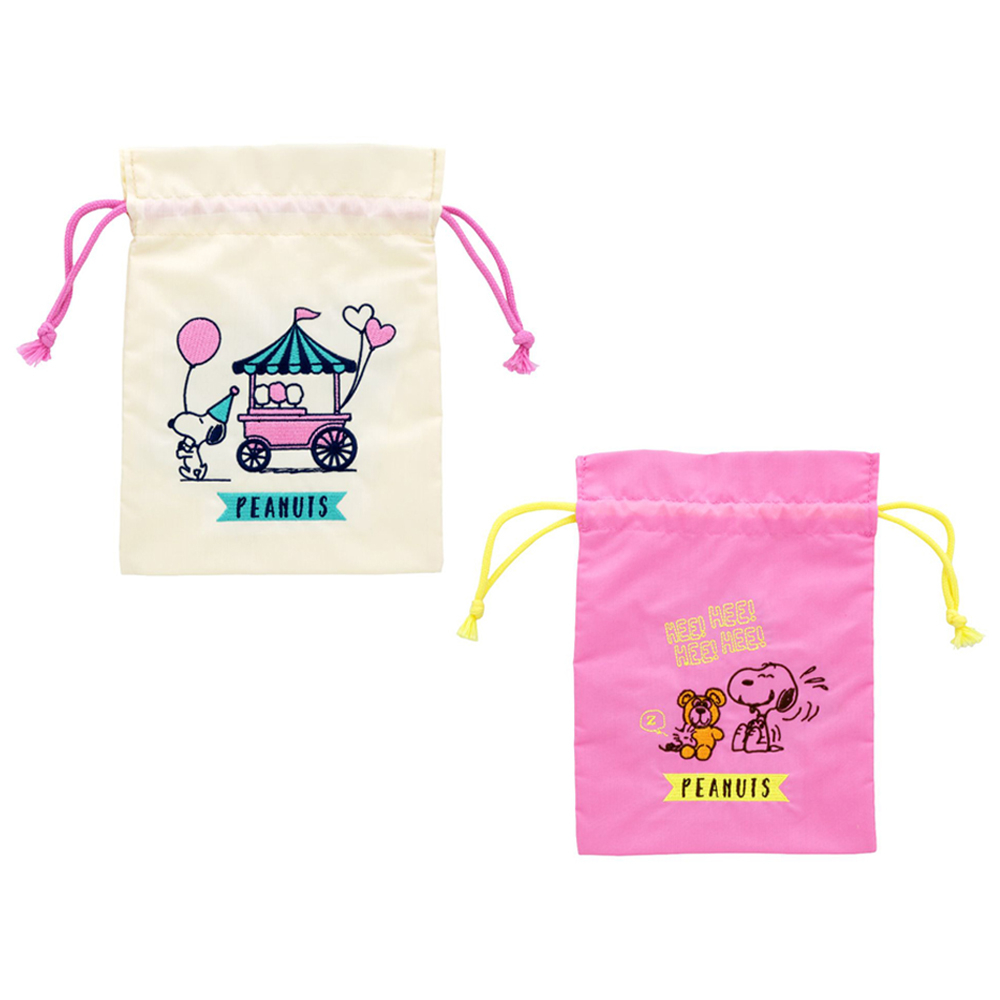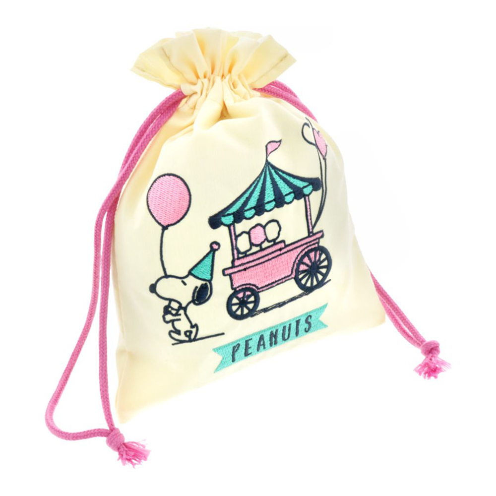 sun-star Snoopy 棉質抽繩刺繡束口袋 史努比 花生玩色嘉年華|小熊玩偶Anime & Manga Collectiblesfun box 玩具旗艦館