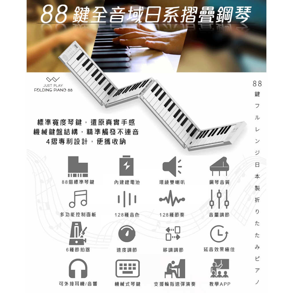 LM 全音域日系『折疊鋼琴』88鍵 電子琴 機械式琴鍵 支援耳機 贈配件 電鋼琴 鋼琴 便攜式鋼琴全音域日系『折疊鋼琴』贈帆布袋、延音踏板,充電線、琴鍵貼、VIP兌換碼、教學APP|全音域日系『折疊鋼琴』贈帆布袋、延音踏板,不要贈品Keyboards & PianosLM聆樂-專業3C影音家電