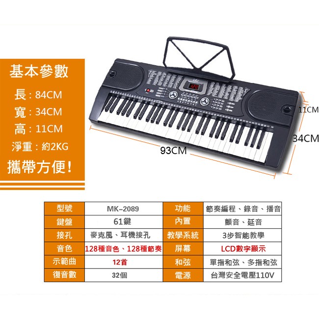 【台灣Jazzy】24H出貨 輕便好收納,入門學習型電子琴 MK-2089 送11全配,麥克風彈唱,初學鋼琴MK-2089+基本配件|MK-2089+基本配件+流行鋼琴教本Keyboards & PianosJazzy_Taiwan.inc