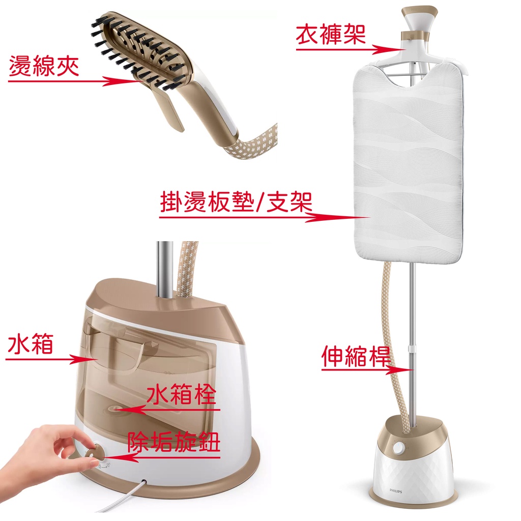 PHILIPS飛利浦 掛燙機專用配件 水箱/衣架/掛燙板/刷具/伸縮桿~適用GC524衣褲架|掛燙板支架(不含墊)|水箱|伸縮桿|燙線夾|掛燙板墊(不含支架)|除垢旋鈕|水箱栓Irons & SteamersLife & You!
