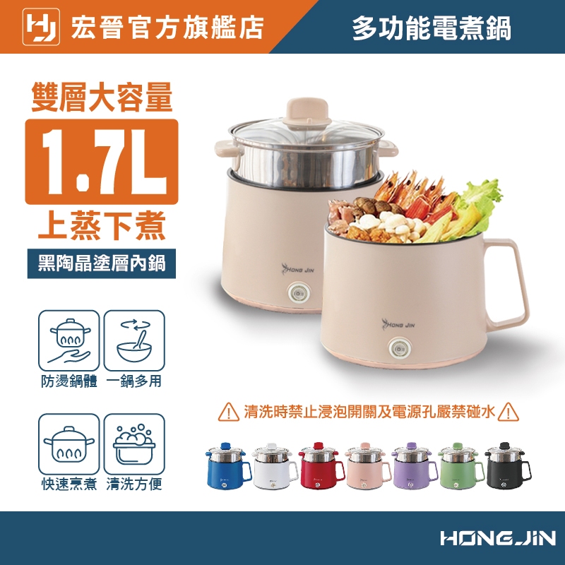 宏晉 多功能電煮鍋 陶瓷不沾美食鍋 電火鍋 快煮鍋 美食料理鍋 1.7L大容量 可適用 蒸、煮、悶、燉、炒牛油果綠(霧面)|可愛粉(霧面)|天使白(霧面)|月光紫(霧面)|海軍藍(亮面)|寶石紅(亮面)|武士黑(亮面)|伯爵奶茶(霧面)Multi-function CookersHONG JIN 宏晉 |3C資訊廣場