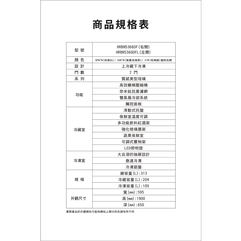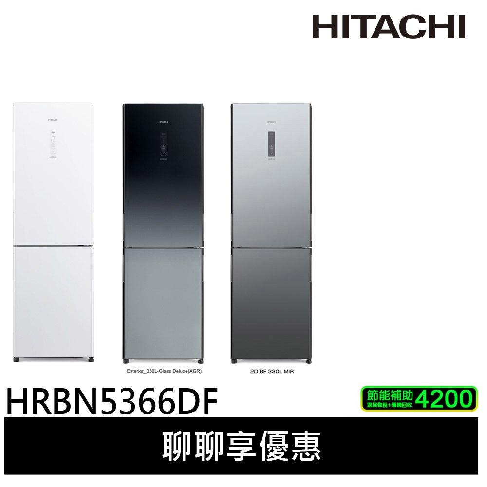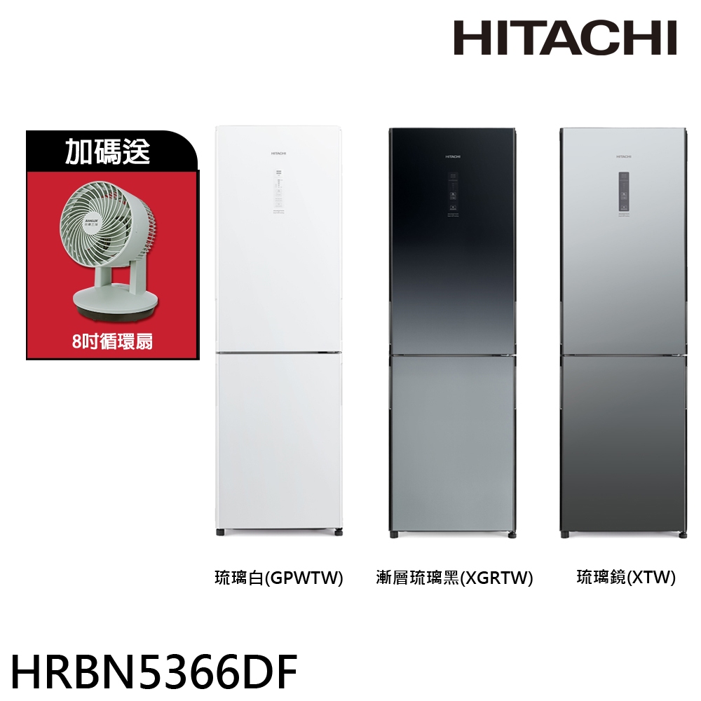 HITACHI 日立 313公升變頻兩門冰箱 HRBN5366DF / HRBN5366DFL琉璃白(左開)|漸層琉璃黑(右開)|琉璃白(右開)|漸層琉璃黑(左開)|琉璃鏡(右開)預購RefrigeratorsHITACHI 阿奇立克日立品牌旗艦館