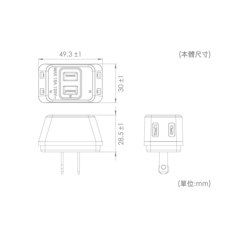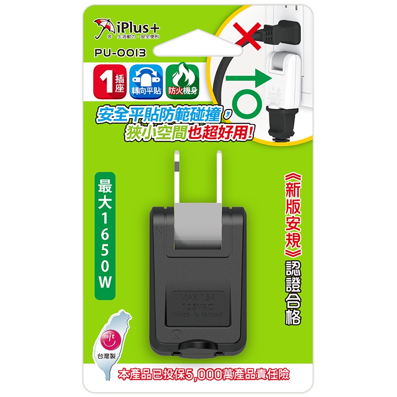 保護傘 2P可轉向轉接插頭 (PU-0013)白色|黑色Electric Sockets & Extension CordsiPlus+保護傘延長線品牌館