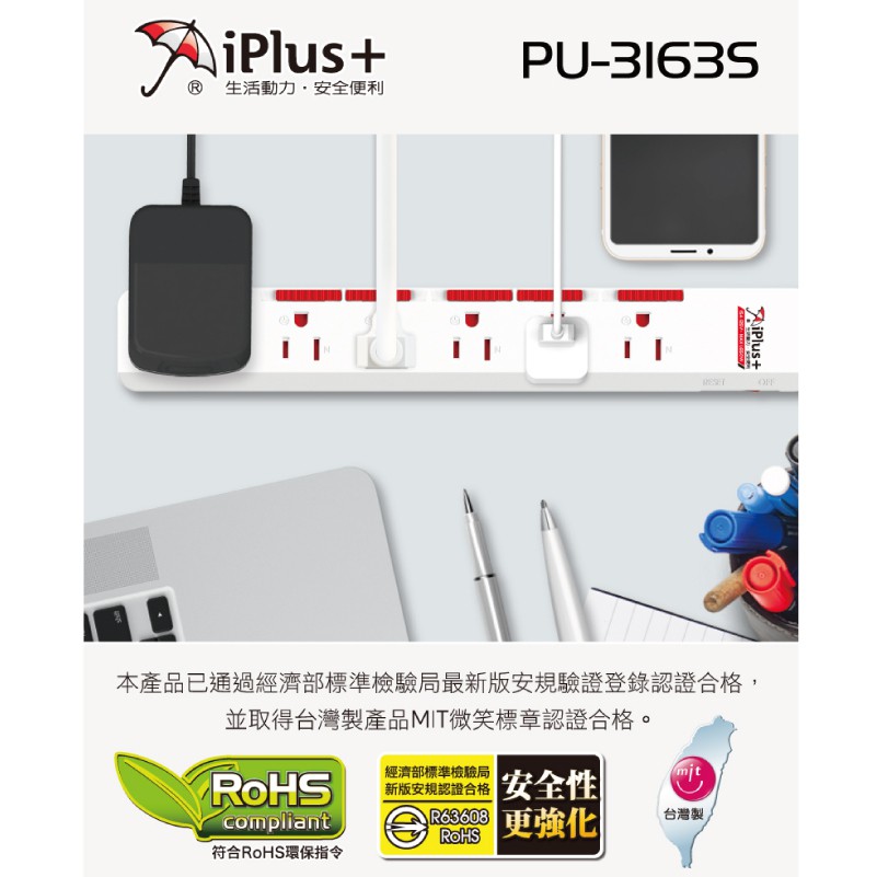 保護傘 防塵套延長線1切6座3P(PU-3163S)1.8M (180公分)|2.7M (270公分)|4.5M (450公分)|1.2M (120公分)Electric Sockets & Extension CordsiPlus+保護傘延長線品牌館