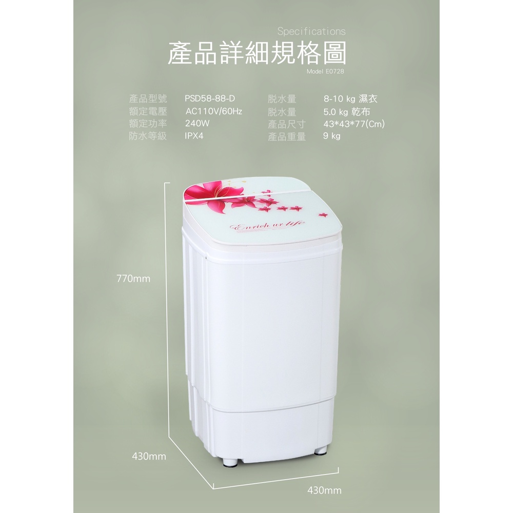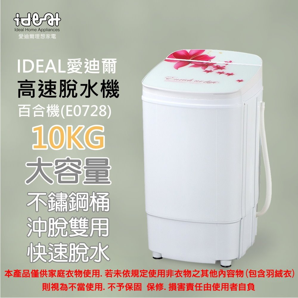 【IDEAL 愛迪爾】10公斤 不鏽鋼滾桶 沖脫雙用 高速脫水機 (E0728 百合機)-僅配送台灣本島【IDEAL 愛迪爾】10公斤 不鏽鋼滾桶 沖脫雙用 高速脫水機 (E0728 百合機)-僅配送台灣本島Washing Machines & Dryersideal愛迪爾