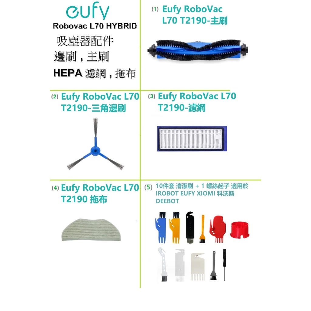 台灣現貨Eufy RoboVac L70 Hybrid T2190掃地機配件 吸塵器更換配件 邊刷 主刷 HEPA濾網Eufy RoboVac L70 濾網|Eufy RoboVac L70 拖布|掃地機器人除塵毛刷套件|Eufy RoboVac L70 主刷|Eufy RoboVac L70三角邊刷Vacuum Cleaners & Floor Care AppliancesLala 3C配件專賣店