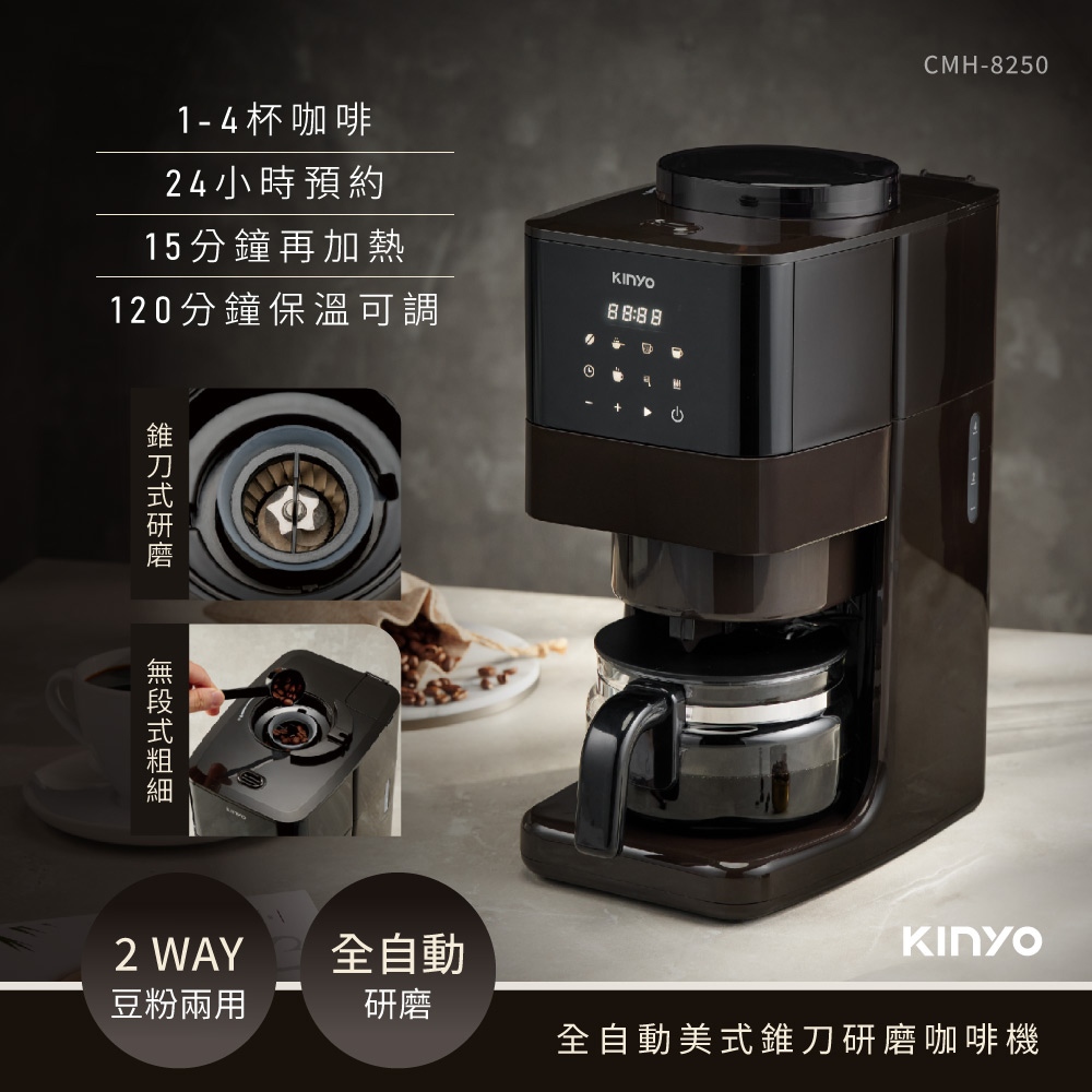 〖KINYO〗 全自動美式錐刀研磨咖啡機 (CMH) 1-4杯 預約 快捷功能面板 |全自動研磨CMH8250 咖啡機|咖啡機(限時特賣下單用)Coffee Machines & AccessoriesKINYO官方旗艦店_家電館