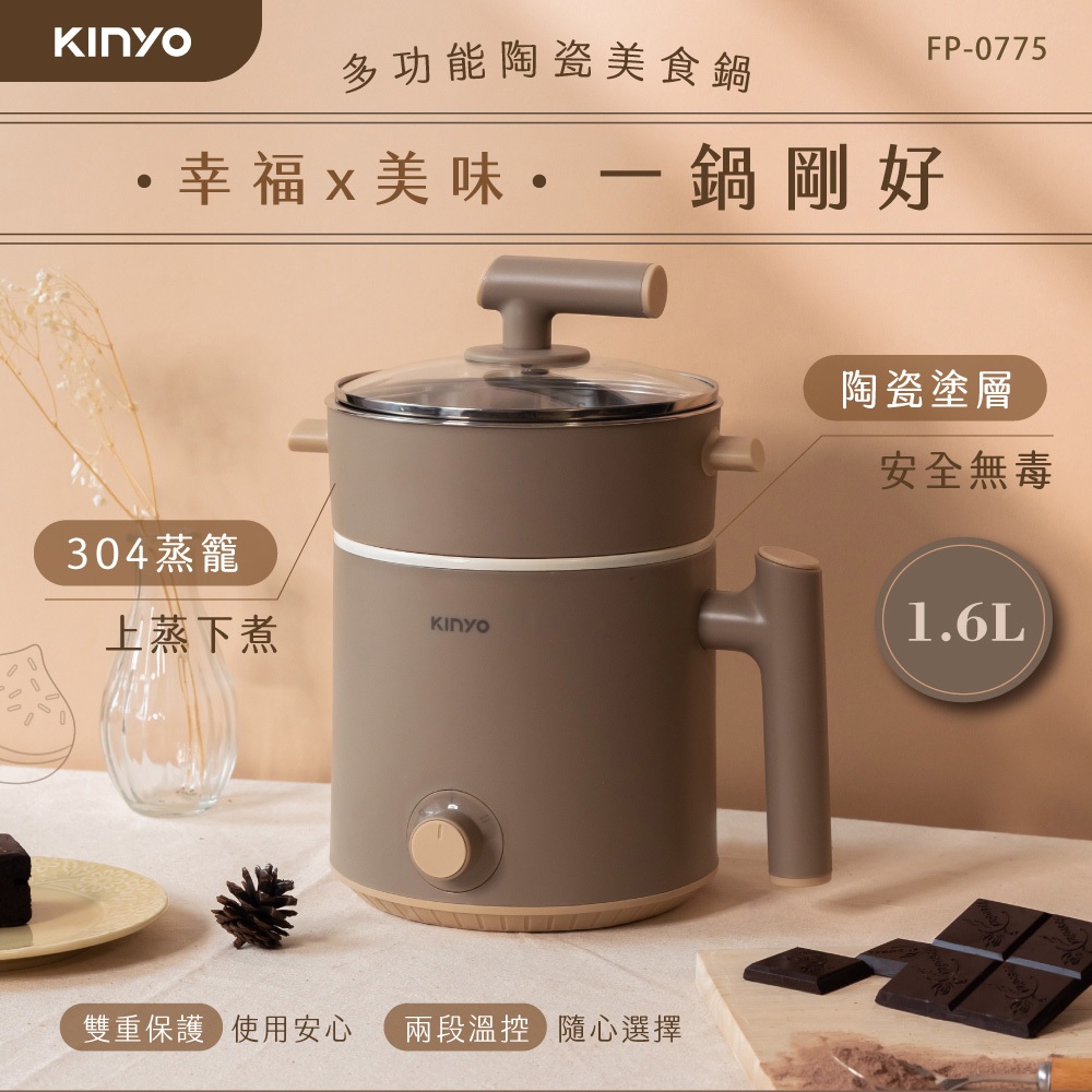 〖KINYO〗 多功能陶瓷美食鍋1.6L (FP)兩段火力 上蒸下煮 陶瓷不沾塗層 | 快煮鍋FP0775 多功能陶瓷美食鍋1.6LMulti-function CookersKINYO官方旗艦店_家電館