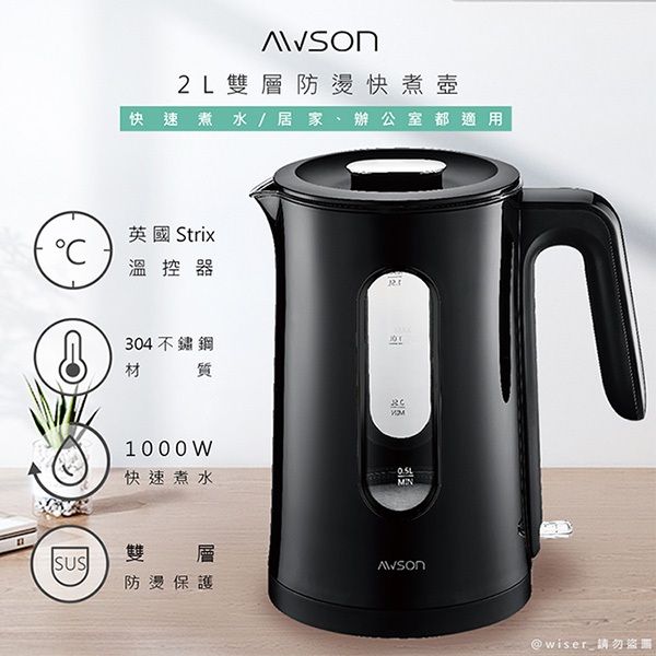 【速熱防燙】AWSON 雙層隔熱玻璃不鏽鋼快煮壺 2公升快煮壺 電水壺 不鏽鋼雙層防燙 玻璃壺 熱水壺 泡茶壺 養生壺2.0L雙層隔熱玻璃不鏽鋼快煮壺|1.7 雙層隔熱不鏽鋼快煮壺-粉色|1.7 雙層隔熱不鏽鋼快煮壺-白色KettlesMECOOL多媒體影音家用電器專賣旗艦館