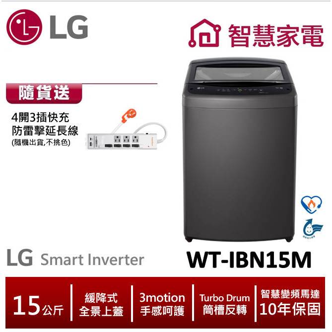 LG樂金WT-IBN15M 智慧變頻直立式洗衣機/15公斤 送4開3插防雷擊延長線