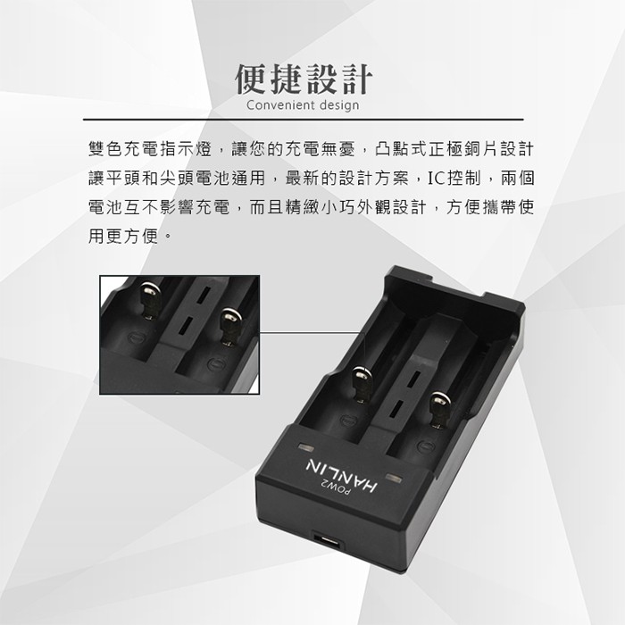 HANLIN-POW2-智能2槽18650電池充電器 18650 電池 充電器 燈號提示 USBPOW2HANLIN官方旗艦店