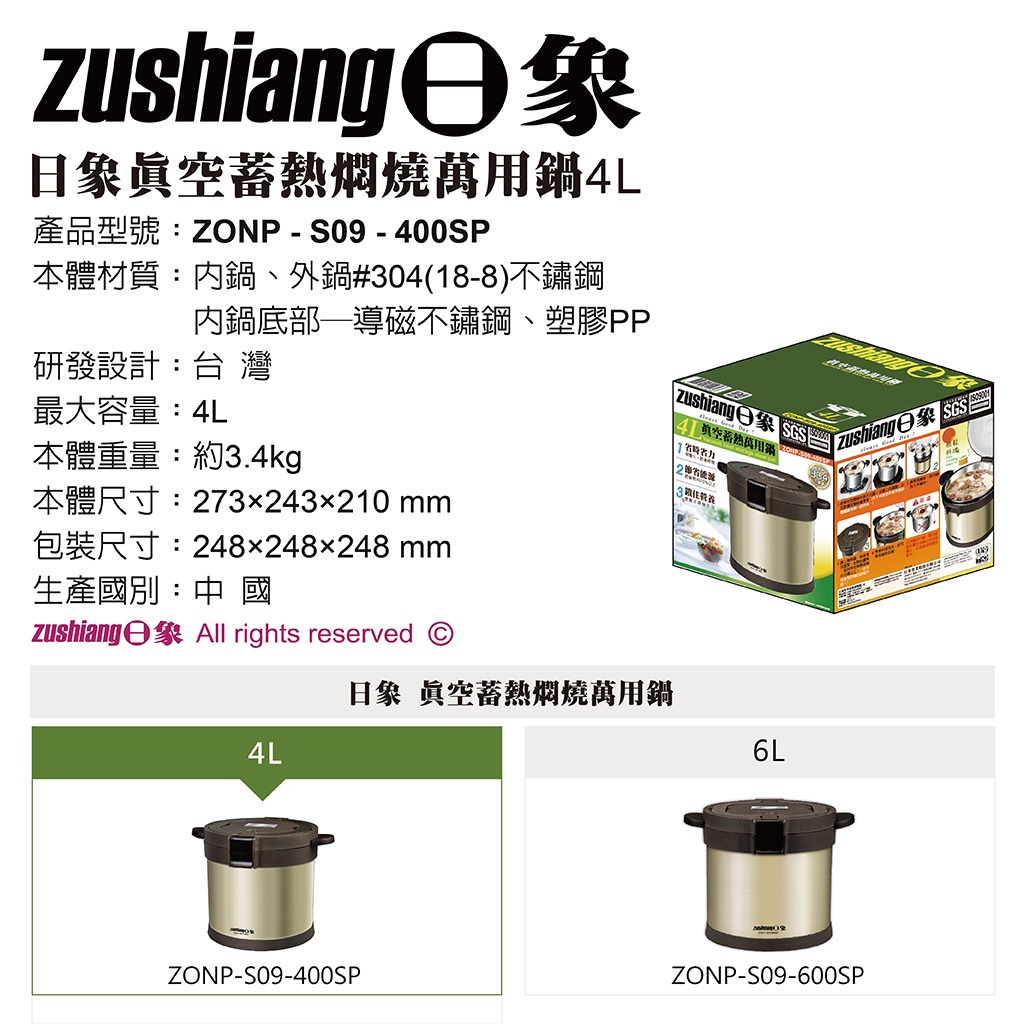 【日象】真空蓄熱萬用鍋ZONP-S09-400SP(4L) / ZONP-S09-600SP(6L) 燜燒鍋 免看火ZONP-S09-400SP(4公升)|ZONP-S09-600SP(6公升)Slow Cookers & Sous Vide Machineshaogeen中華豪井 小家電旗艦店