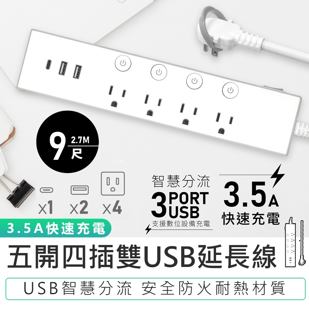 【KINYO 五開四插雙USB延長線 CGU-354】電源延長線 過載斷電 USB延長線 電腦延長線 插座延長線