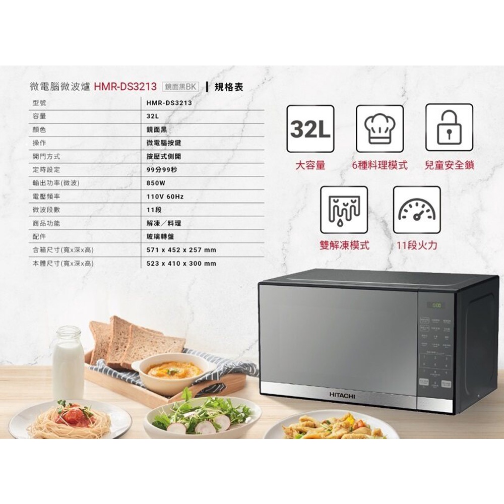 HITACHI 日立 32公升 微電腦微波爐 鏡面黑 HMRDS3213 / HMRDS3213BKHMRDS3213 全新品MicrowavesHITACHI 阿奇立克日立品牌旗艦館