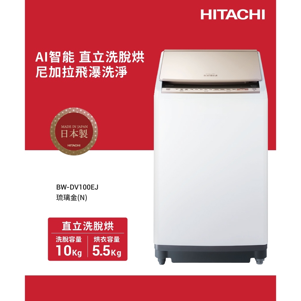 HITACHI 日立 AI 直立洗脫烘 洗衣機 琉璃金 BWDV100EJ-NBWDV100EJWashing Machines & DryersHITACHI 阿奇立克日立品牌旗艦館