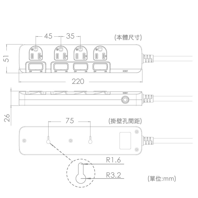 保護傘 2P延長線1切3座(PU-2132) 延長線插座6尺 (180公分)|9尺 (270公分)|15尺 (450公分)Electric Sockets & Extension CordsiPlus+保護傘延長線品牌館