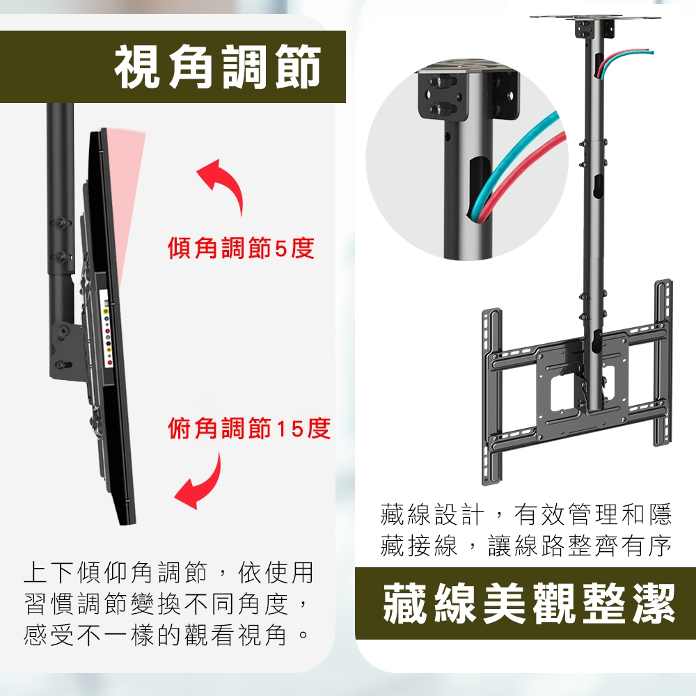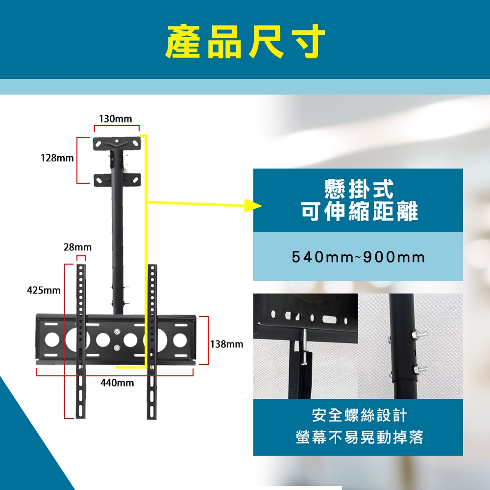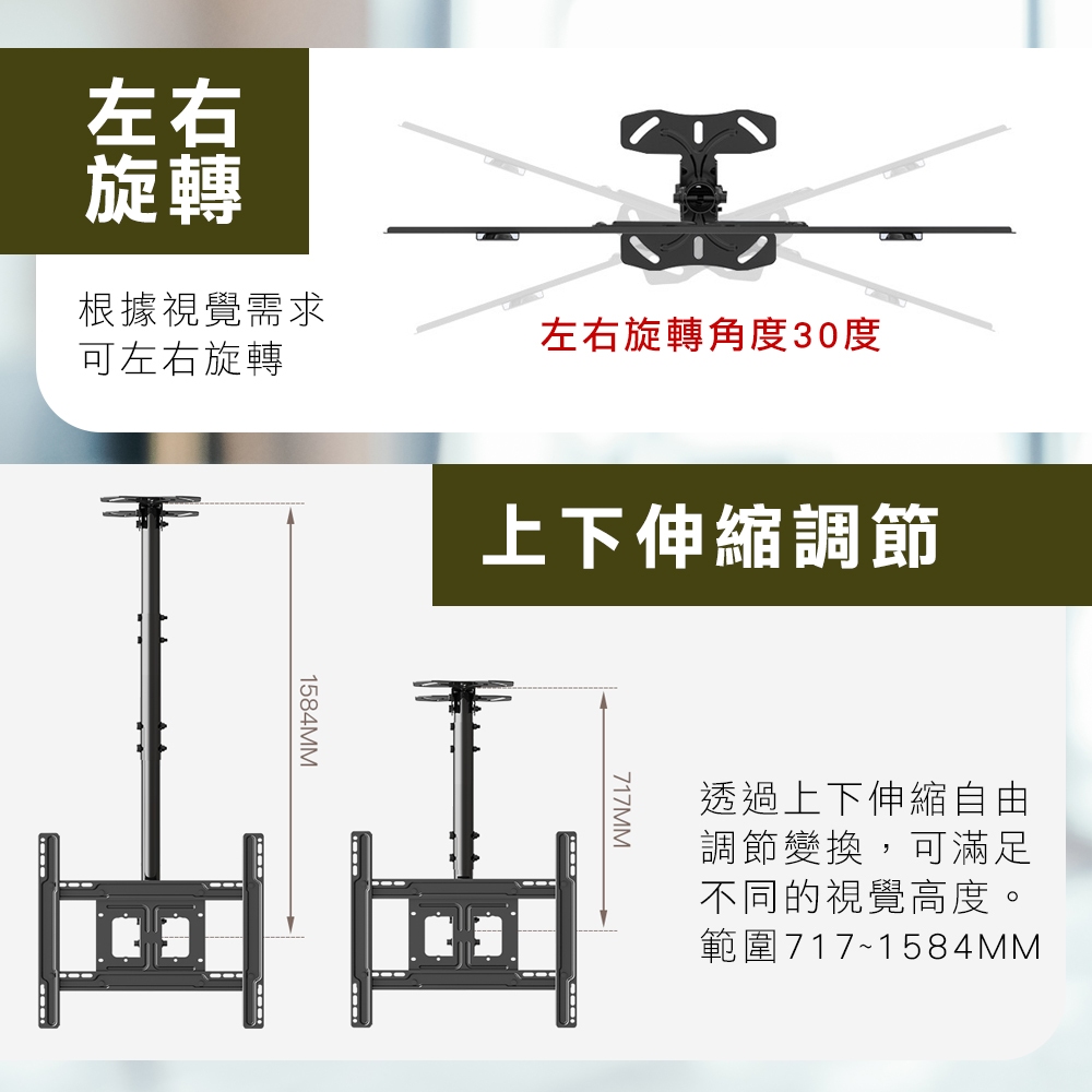 【台灣發貨】26~75吋 伸縮旋轉液晶電視架 吊掛式 適合 小米 TCL LG 三星 禾聯 聲寶 東元32~75吋無附壁虎【70~160CM】|26~60吋【桿長54~90CM】|延長桿50~90CM 限26~60吋使用TV Bracketsi-gota官方旗艦館|昶興電子