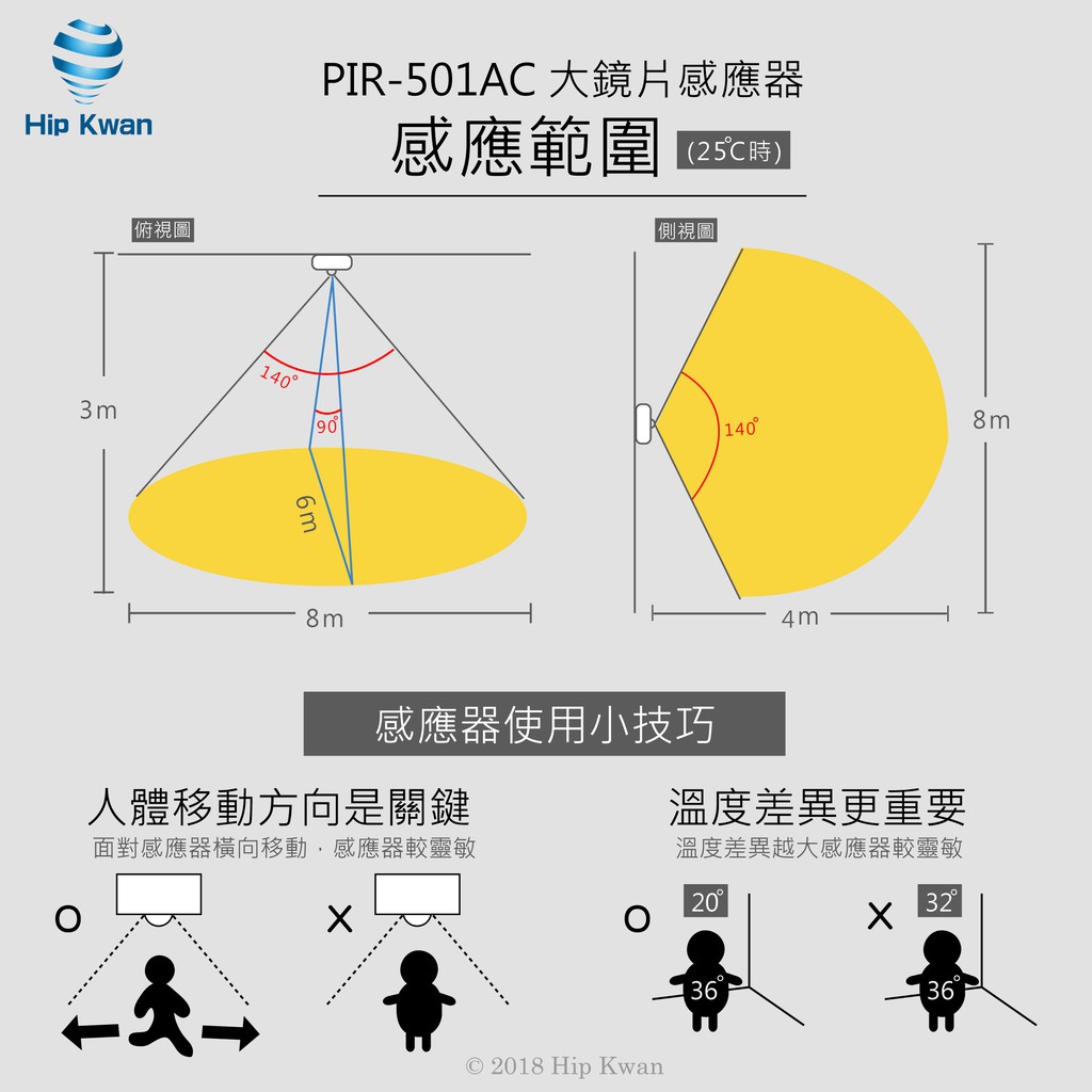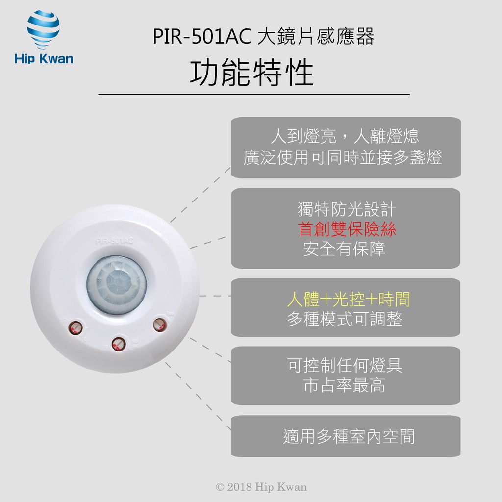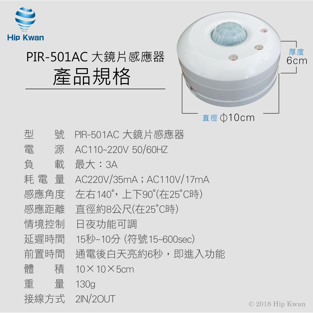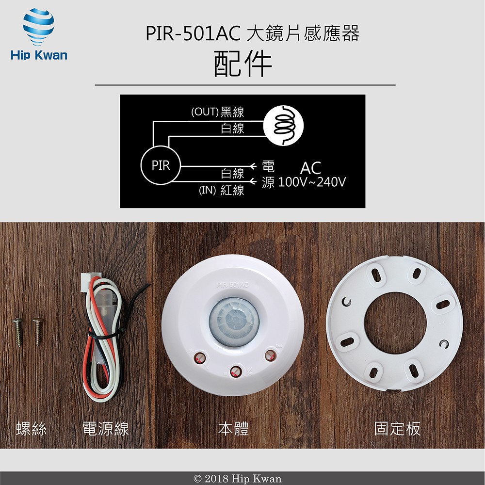 「協群光電Hip Kwan」PIR-501AC 大鏡片感應器 紅外線pir501感應燈感應器全電壓AC110~220全包裝|工業包裝(無泡殼、吊卡)|客製化需求( 無電線.螺絲.固定板)OthersHip kwan 協群光電