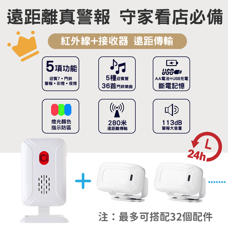 宏晉 Hello-1 分離式感應門鈴 迎賓門鈴 感應門鈴 感應門鈴 無線門鈴 紅外感應門鈴 提示門鈴 警報器主機x1+感應器x1|單購-感應器|單購-紅外線遙控器DoorbellsHONG JIN 宏晉 |3C資訊廣場