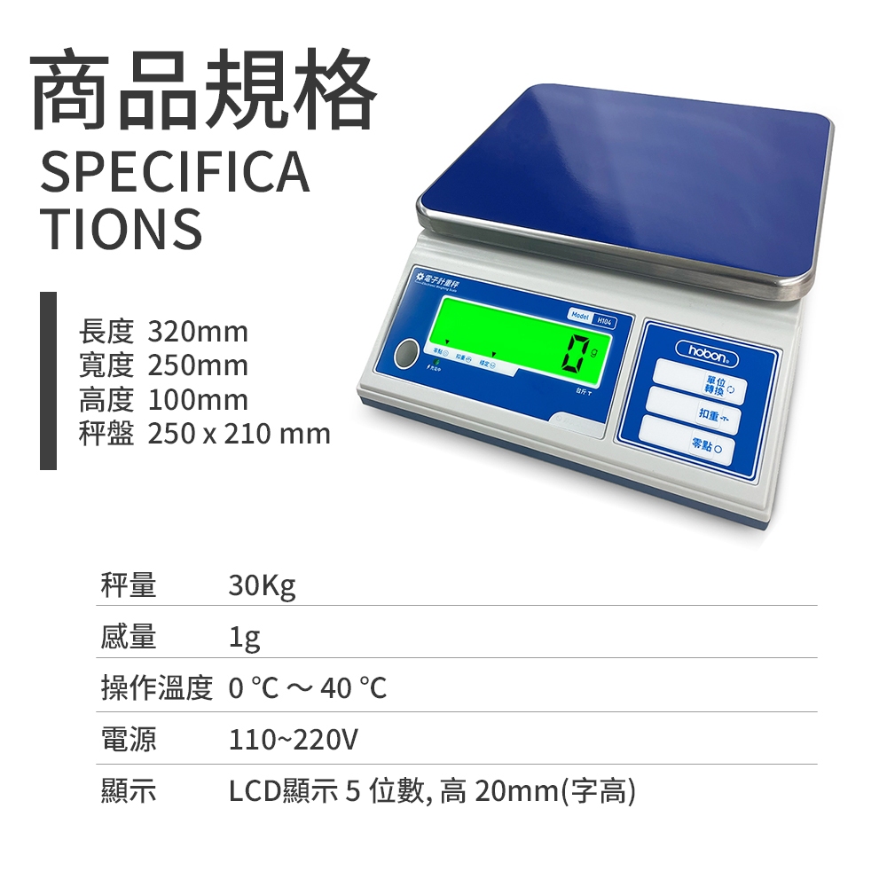 H104計重秤 hobon電子秤 秤量30kg 感量1g30kgx1ghobon電子秤