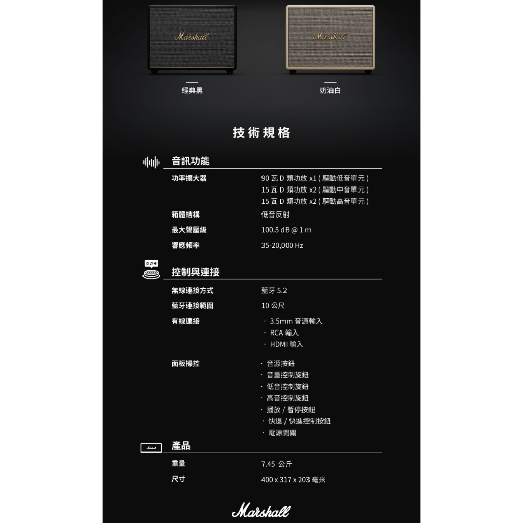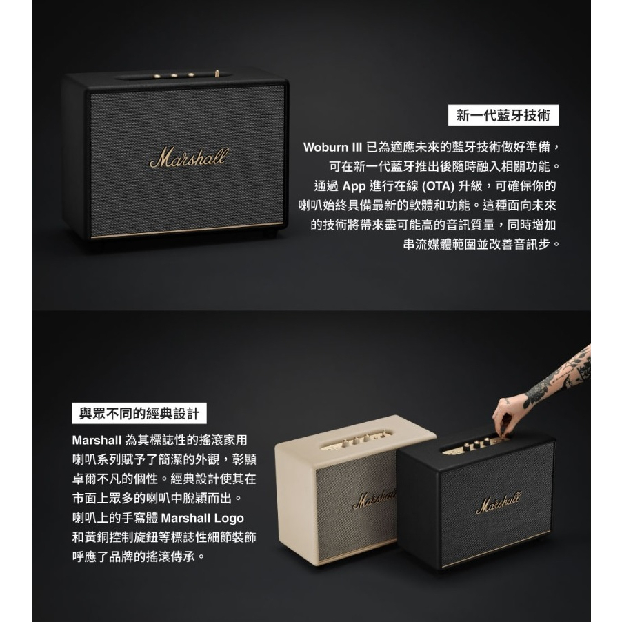 Marshall Woburn III Bluetooth 藍牙喇叭 保固18個月 百滋總代理台灣公司貨黑色|奶油白|復古棕OthersGSIR家電生活館