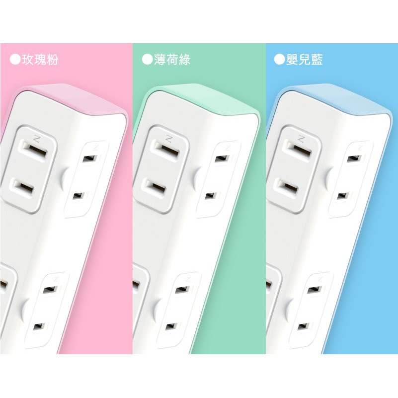 【保護傘】2P小壁插2+2座(PU-0043)玫瑰粉|薄荷綠|嬰兒藍Electric Sockets & Extension CordsiPlus+保護傘延長線品牌館