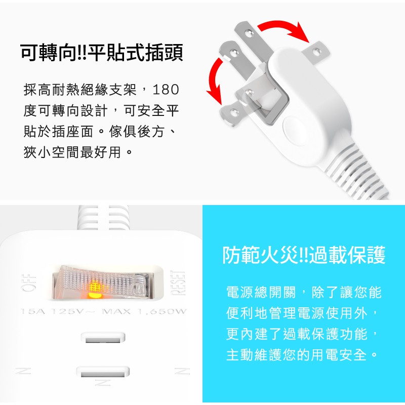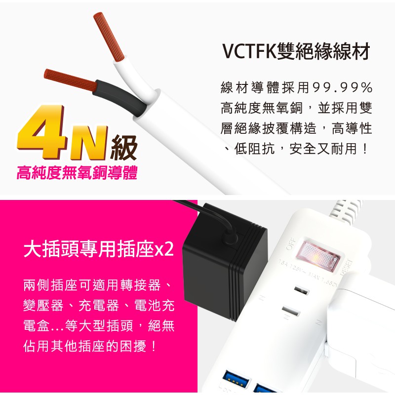 Tyson太順電業 1切3座智慧型充電組 USB延長線(TS-213CC)0.9M (90公分)|1.8M (180公分)|2.7M (270公分)Electric Sockets & Extension CordsiPlus+保護傘延長線品牌館