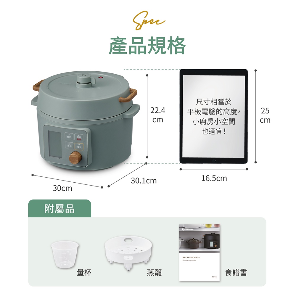 IRIS OHYAMA 智慧型3L電子壓力鍋 KPC-MA-3(萬用鍋/電鍋/舒肥)羅勒綠|經典黑Pressure CookersIRIS OHYAMA 台灣愛麗思歐雅瑪