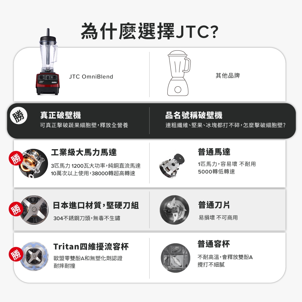 JTC杰帝士 OmniBlend 三匹馬力萬用調理機-2L經典圓杯 TM-767-三色-台灣公司貨鋼琴黑|魔力紅|經典白Juicers, Blenders & Soya Bean MachinesJTC杰帝士調理機 官方旗艦店