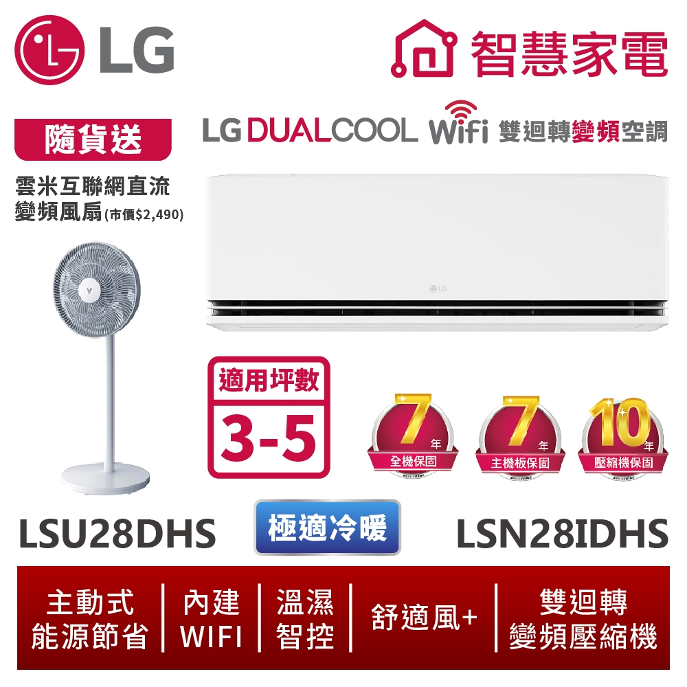 LG樂金 LSU28DHS_LSN28IDHS 3-5坪Wifi雙迴轉變頻空調 – 極適冷暖系列 送12吋DC風扇LG樂金 LSU28DHS_LSN28IDHS 3-5坪Wifi雙迴轉變頻空調 – 極適冷暖系列 送12吋DC風扇CoolingLG旗艦館
