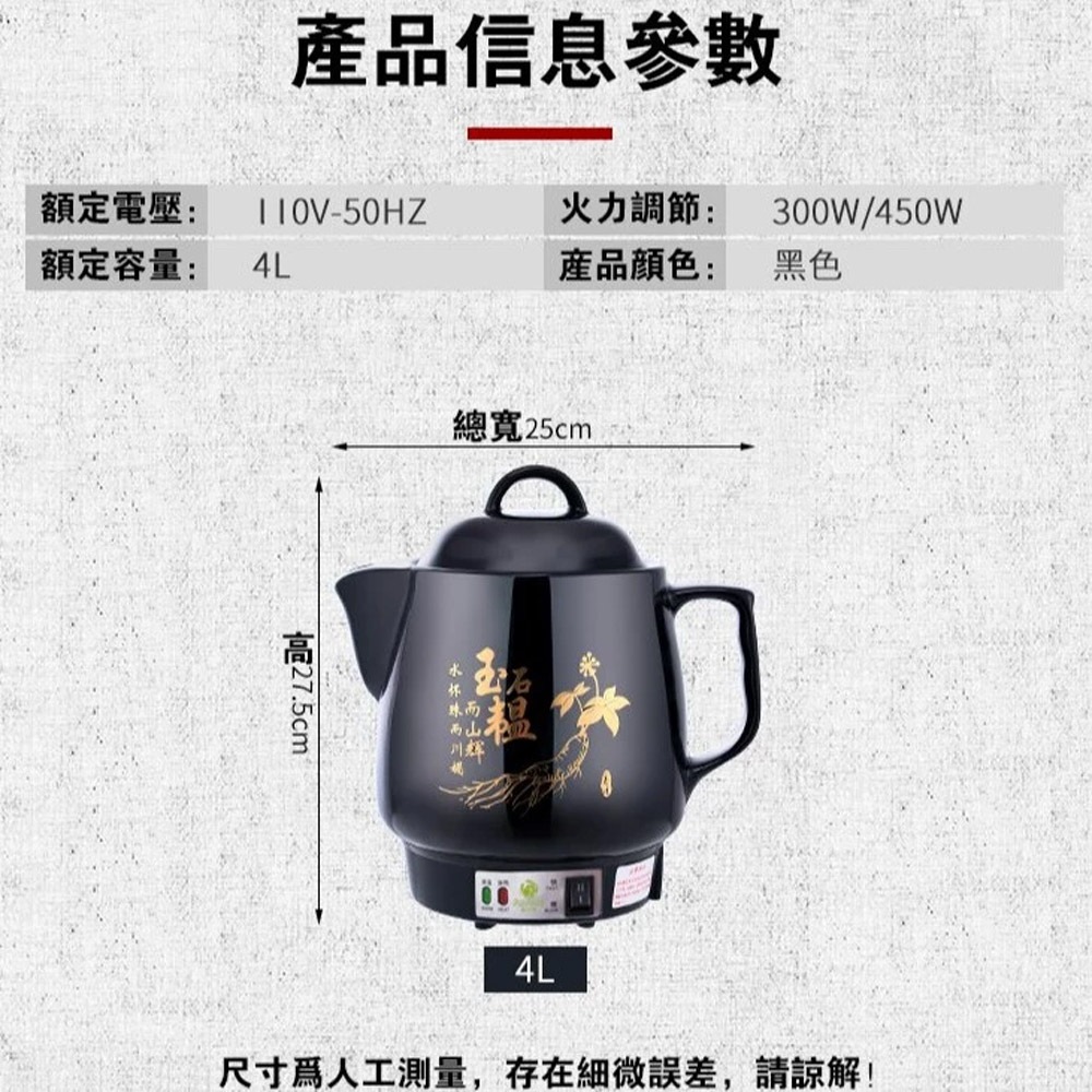 全自動家用電煮壺 110V養生壺 陶瓷煎藥壺 4L 快煮壺 中藥壺 煲熬中藥壺 水壺 煎藥插電藥罐 智能煲湯養生壺(黑色4L)KettlesHeartPick心選品牌店