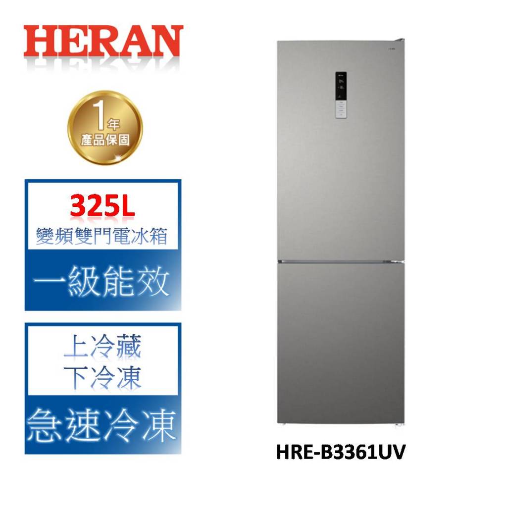 HERAN禾聯 325L變頻雙門電冰箱 HRE-B3361UVHERAN禾聯 325L變頻雙門電冰箱 HRE-B3361UVRefrigeratorsHERAN禾聯 熊好的店