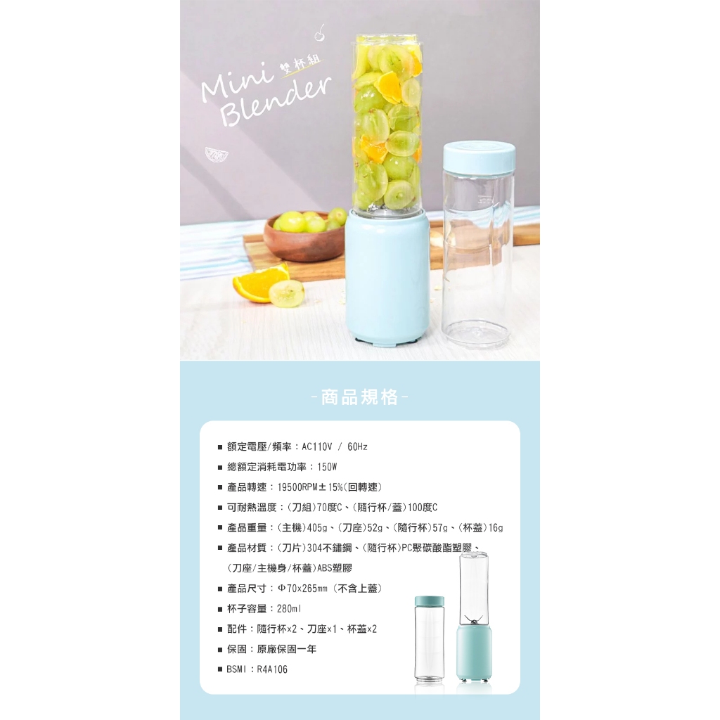 【KINYO】迷你隨行杯果汁機-雙杯 JR-191 電動果汁杯 隨行杯 家用榨汁機 榨汁機 果汁機 隨身果汁機FJuicers, Blenders & Soya Bean MachinesH MOD髮摩 品牌旗艦館