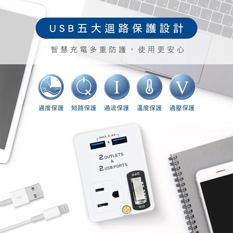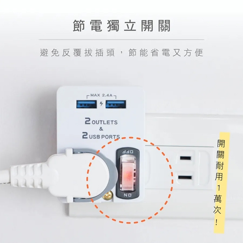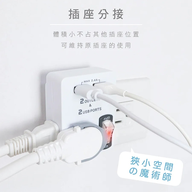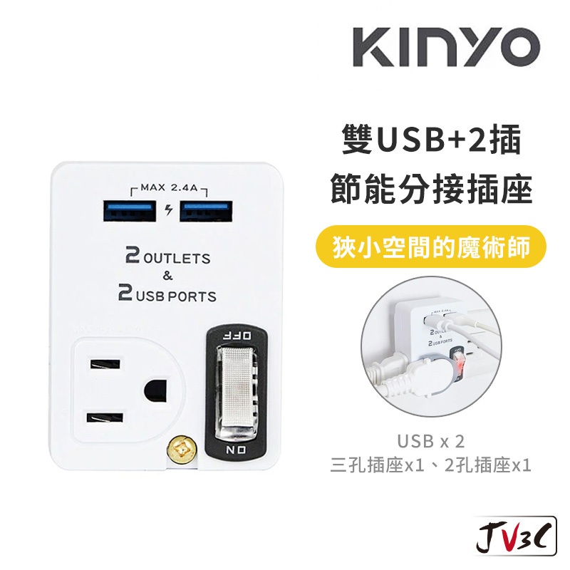 KINYO 雙USB+2插節能分接插座 分接插座 轉接插座 USB孔 分接 擴充插座 插座白色Electric Sockets & Extension CordsJV3C商城