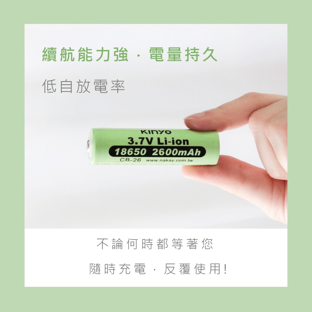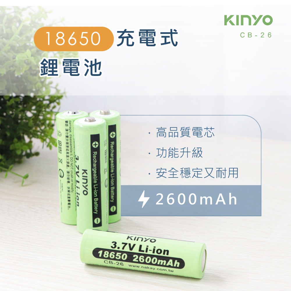 〖KINYO〗 18650鋰充電電池 (CB) 安全電芯 2600mAh 3.7V | BSMI 安規通過CB26 鋰電池KINYO官方旗艦店_家電館