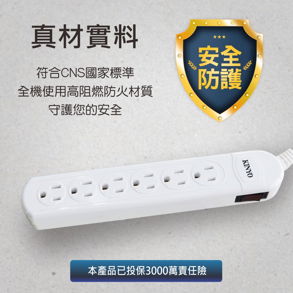 〖KINYO〗 1開6插安全延長線(CG) 6呎/9呎 耐燃材質 防突波 | 台灣製造CG3166 延長線6呎|CG3169 延長線9呎Electric Sockets & Extension CordsKINYO官方旗艦店_家電館