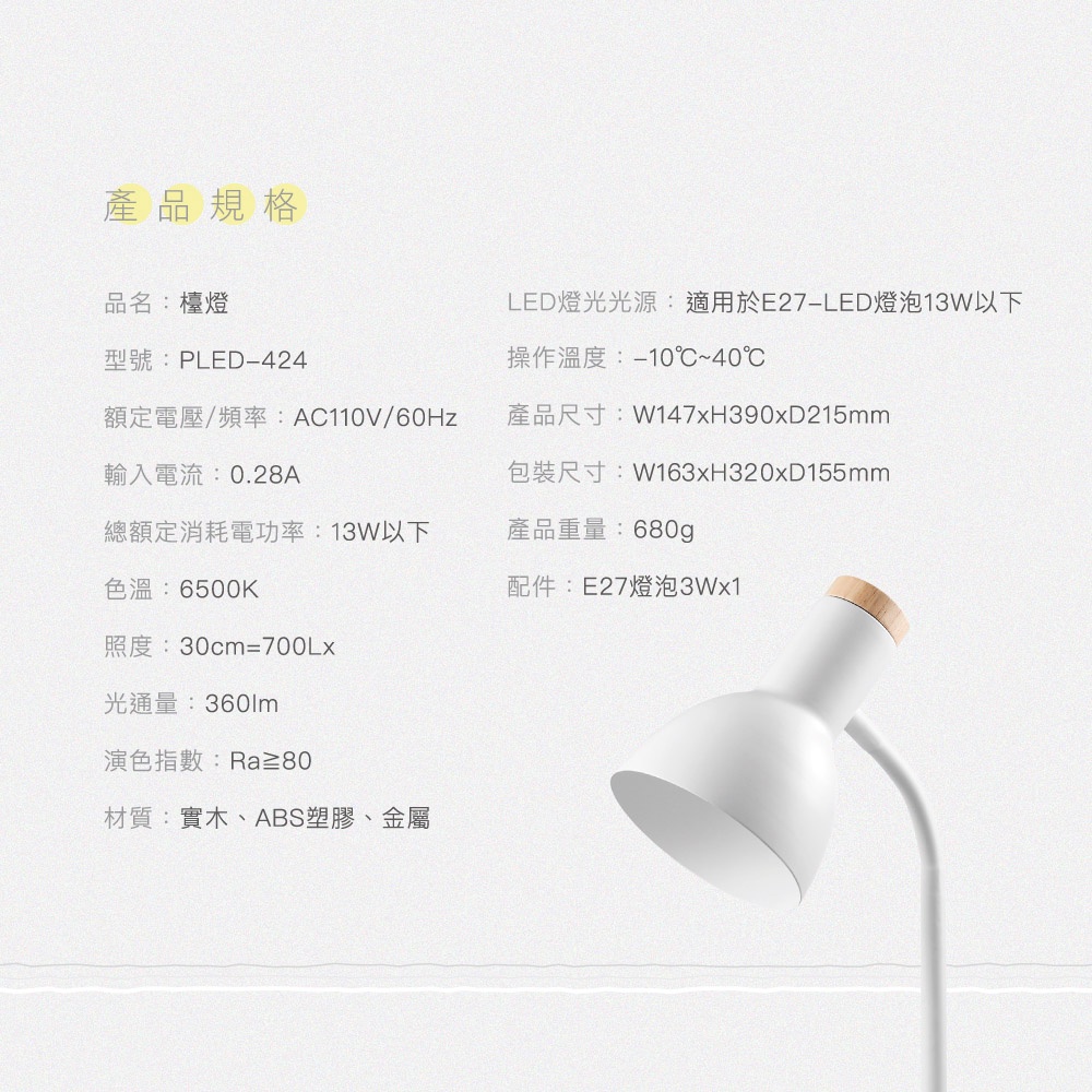 〖KINYO〗 原木質感檯燈 (PLED) 送E27燈泡 台燈 閱讀燈 床頭燈 |禮物PLED424 白色 (送E27 燈泡)OthersKINYO官方旗艦店_家電館