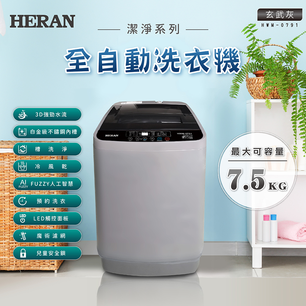 【禾聯 HERAN】7.5KG 3D強勁水流 全自動洗衣機-HWM-0791(含基本安裝)【禾聯 HERAN】7.5KG 3D強勁水流 全自動洗衣機-HWM-0791(含基本安裝)Washing Machines & DryersHERAN禾聯 熊好的店