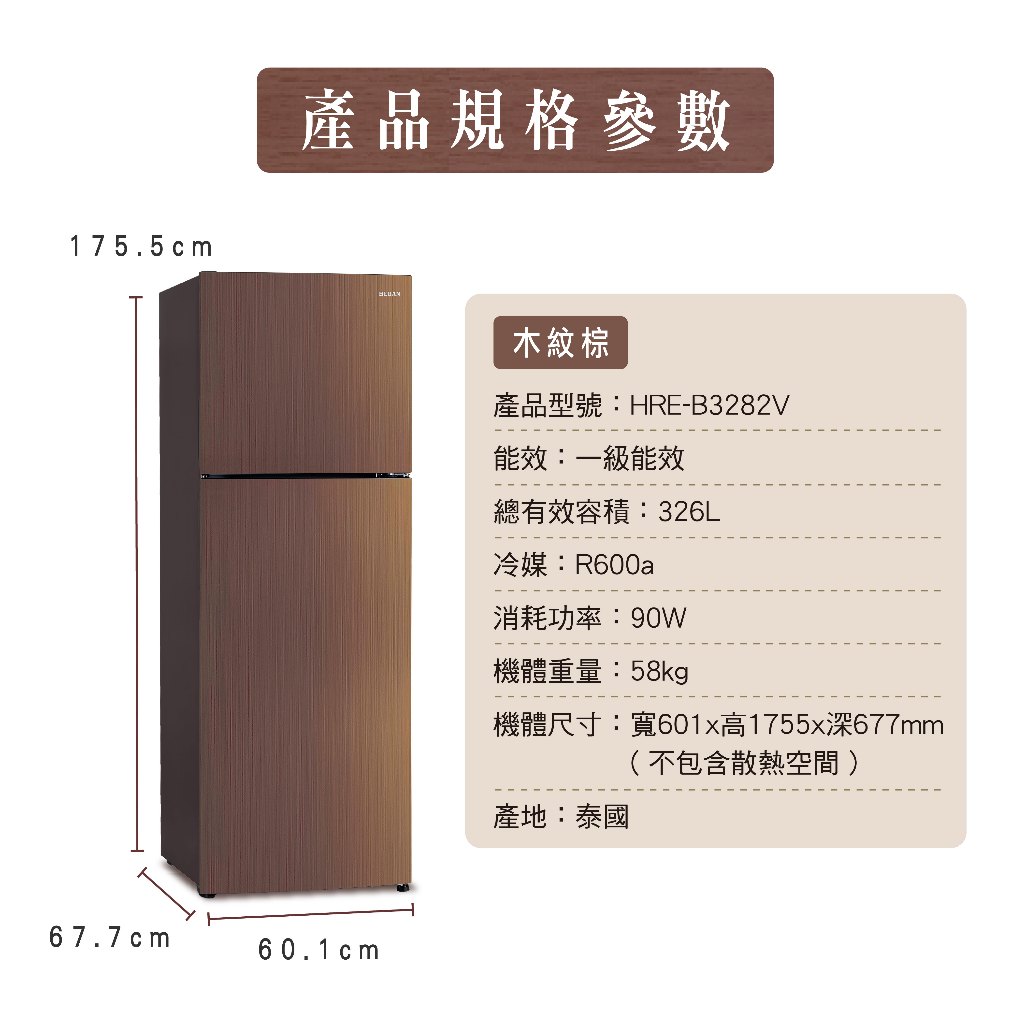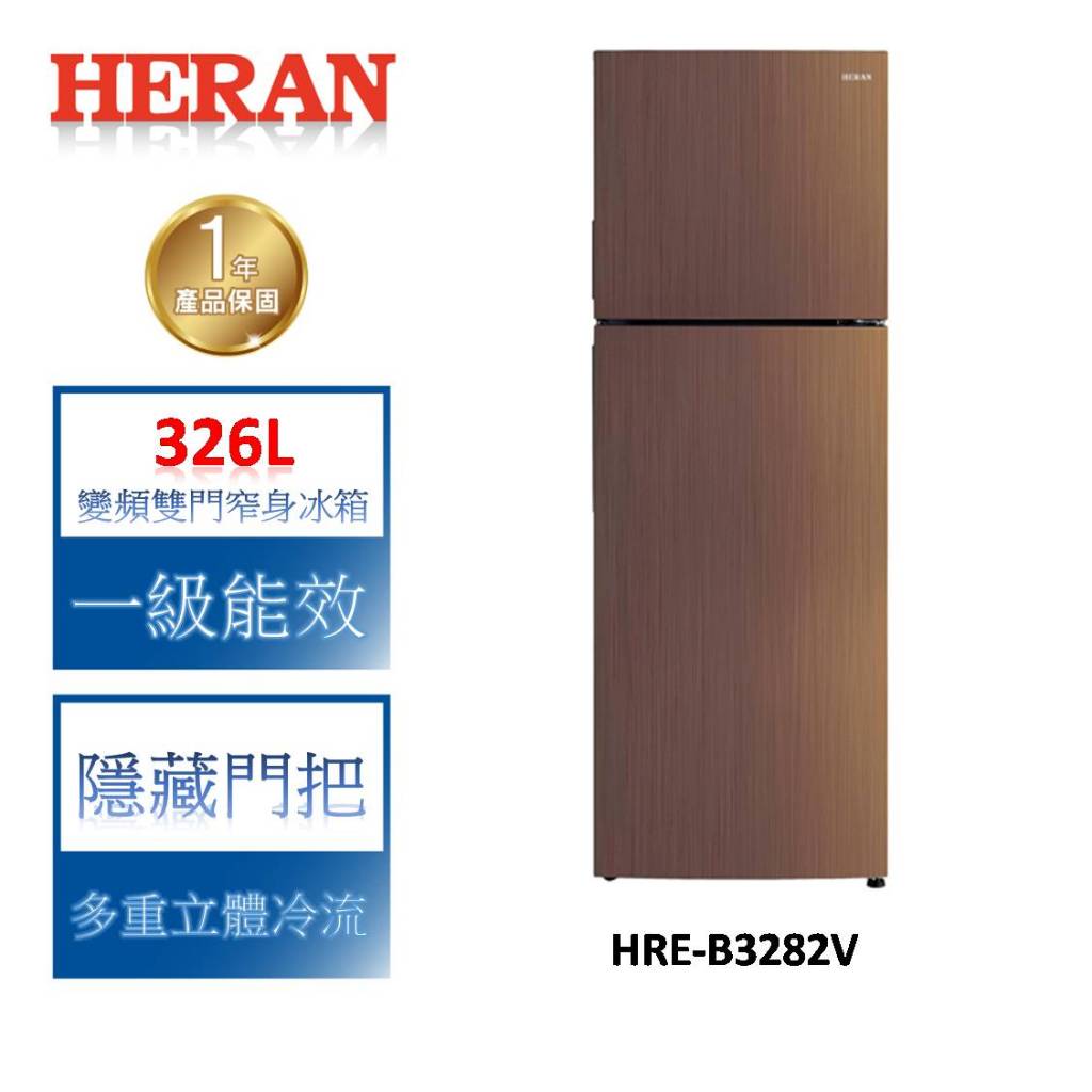 HERAN禾聯 326L變頻一級雙門窄身電冰箱 HRE-B3282VHERAN禾聯 326L變頻一級雙門窄身電冰箱 HRE-B3282VRefrigeratorsHERAN禾聯 熊好的店